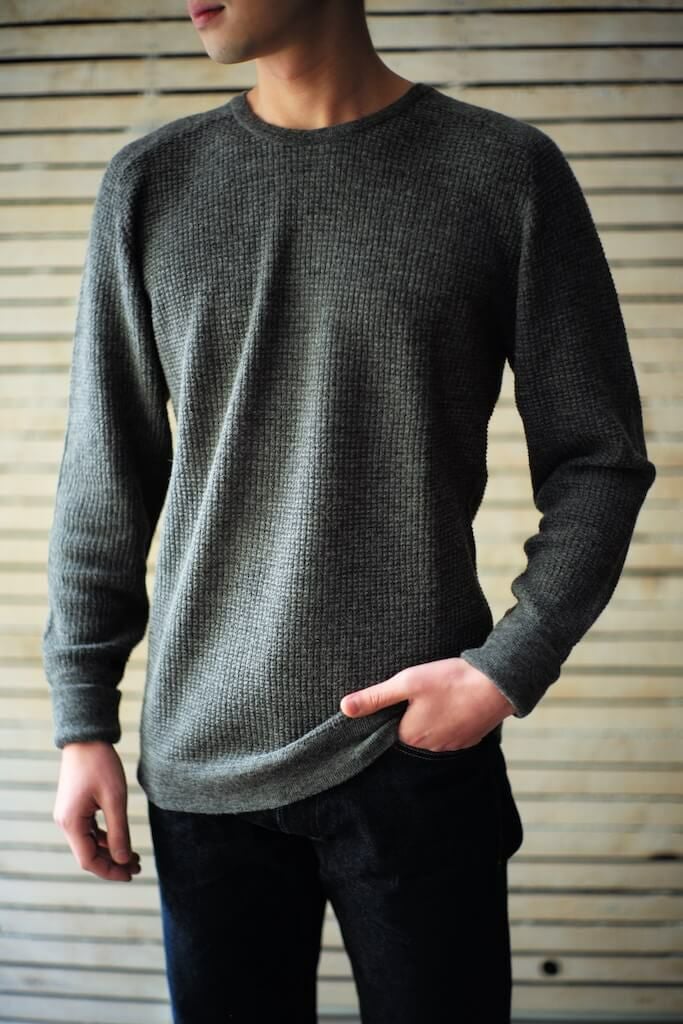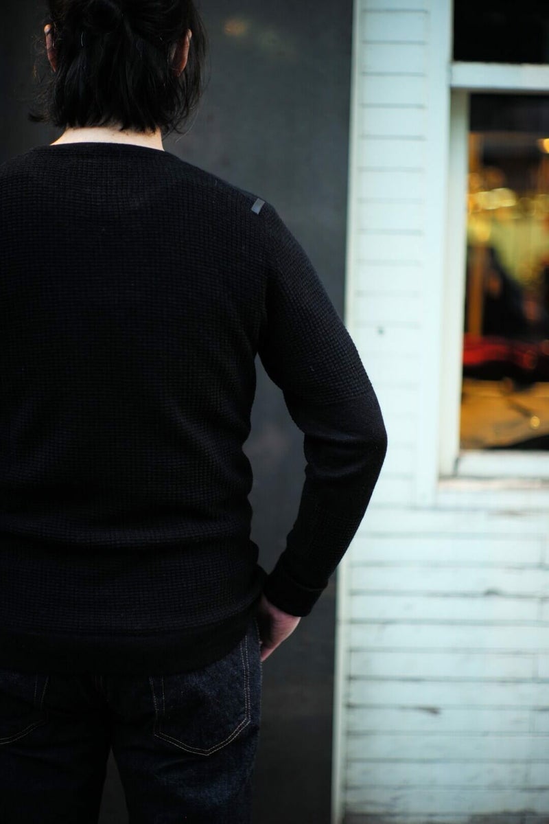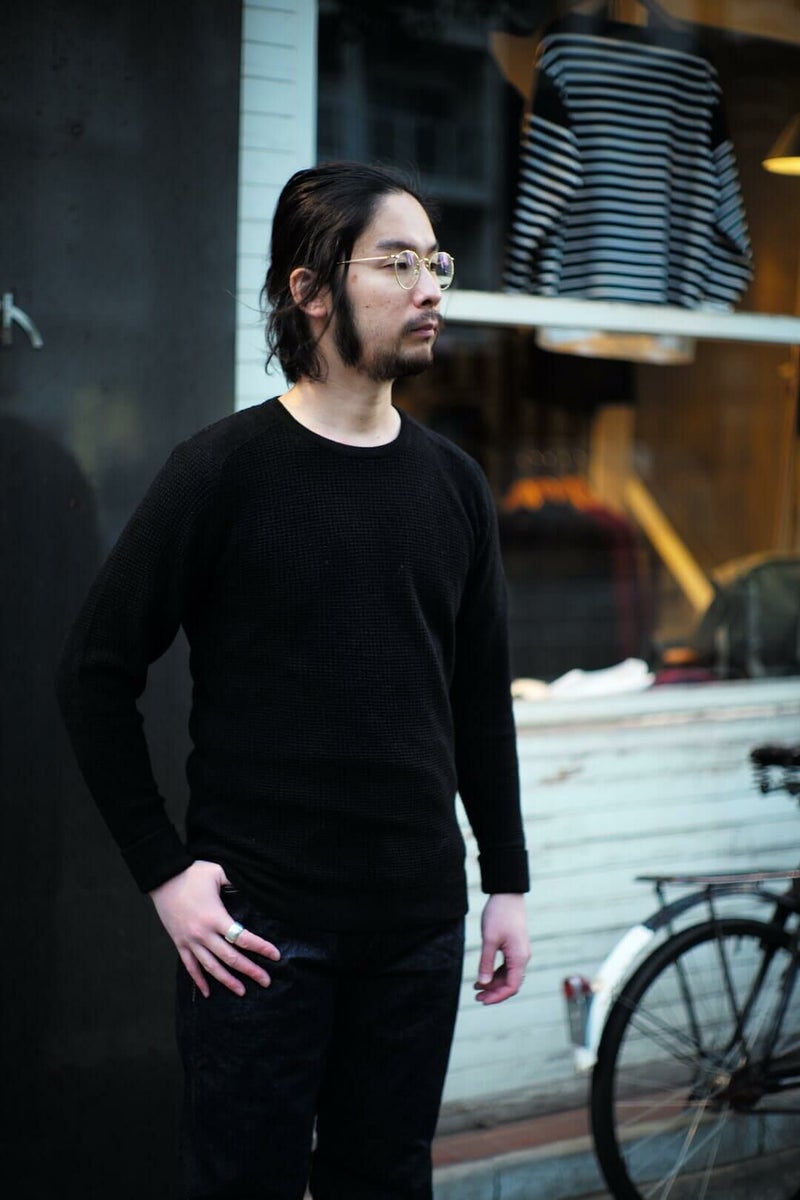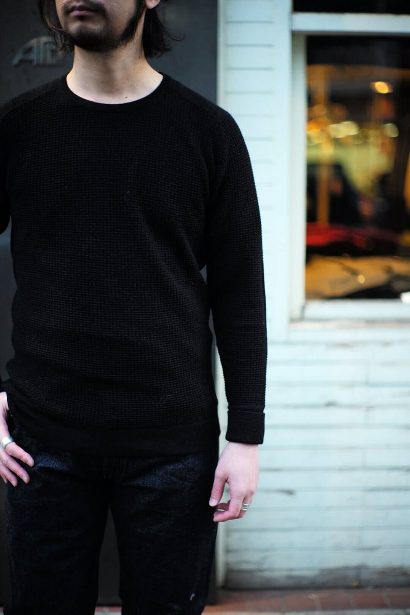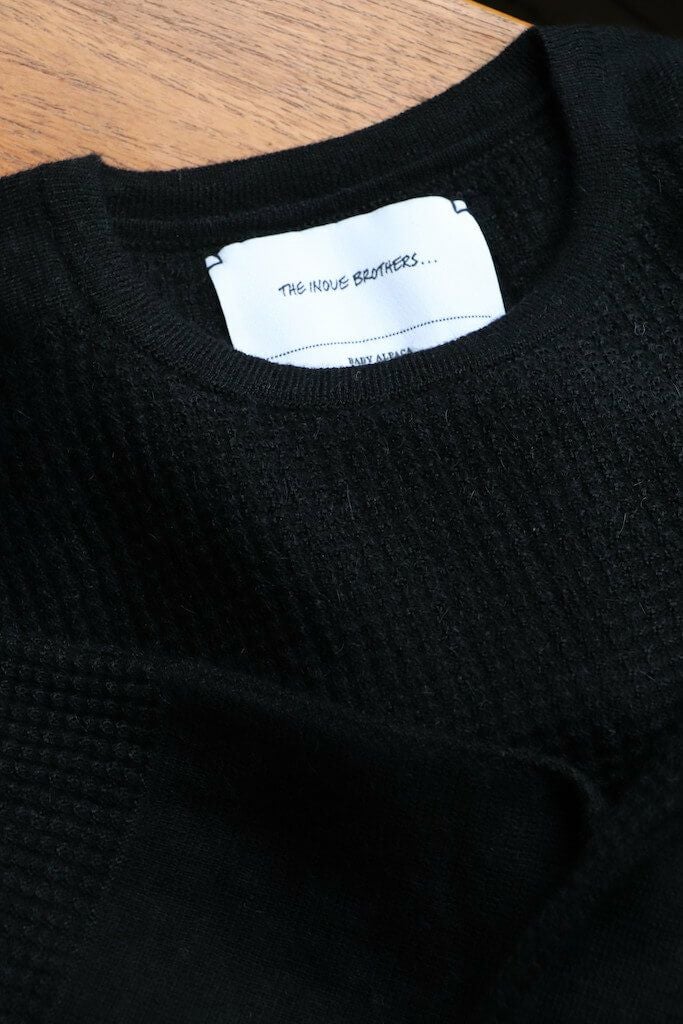 THE INOUE BROTHERS(ザ イノウエブラザーズ)のハイゲージワッフルニット。 ワッフル編みで仕立てられた程よい肉感は、ジャケットのインナーとしても最適です。 スウェット感覚でラフに着用できるのも魅力。 100% Baby Alpaca THE INOUE BROTHERS / Thin Waffle Knit Pullover Price ¥50,600(税込)