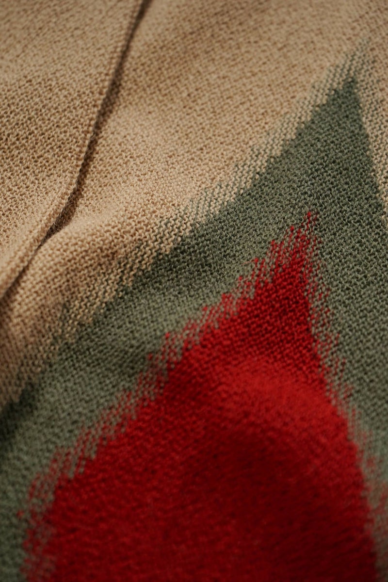 裏表の無い編地と、縦横の両方向に伸縮性のあるパール編みが最大の特徴で、発色の良いカラーリングは他にはない唯一無二のニット。