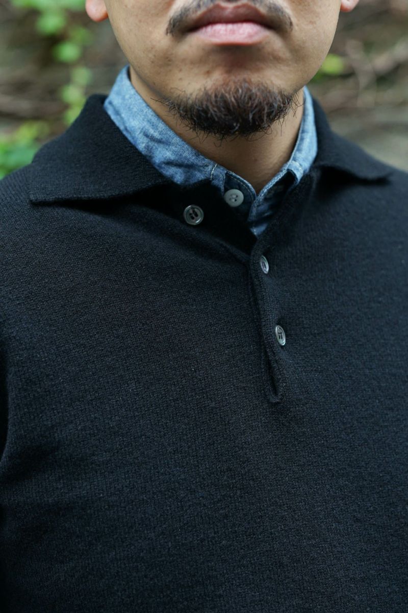 KENNETH FIELD(ケネスフィールド)がスコットランドの老舗ニットメーカーWILLIAM LOCKIEに別注製作したニットポロ。 素材には、南オーストラリアで飼育された高品質なジーロンラムウールを使用しています。毛糸2本を撚り合わせた2プライ仕様。襟を少しだけ大きくしバランスを整えており、スポーツコートのインナーとして最適です。コーデュロイやフランネル、ツイードのスポーツコートと合わせるのがおすすめです。