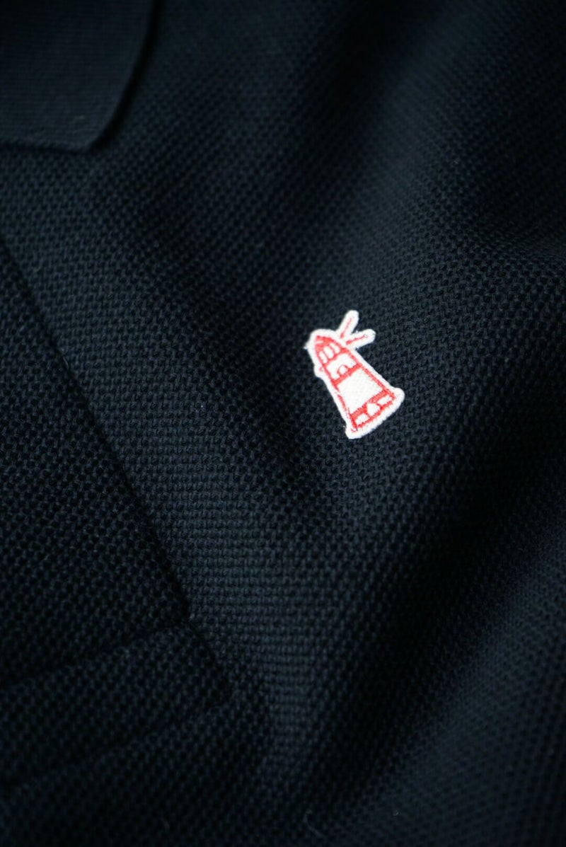 また、襟は一着一着、個別に丁寧に編み立たてたこだわりのディテール減らし目の技法を用いる事により通常の編みたてでは表現できない、襟の形状はよりスポーティーでかつクラシカルな雰囲気を醸し出しています。 通常のポロよりもかなり肉厚な生地なので、着込めば着込むほどエイジングが楽しめます。 胸元の灯台のワンポイントもまたアクセントに。 一枚で着ても良し、ジャケット のインナーにも最適な一枚です。