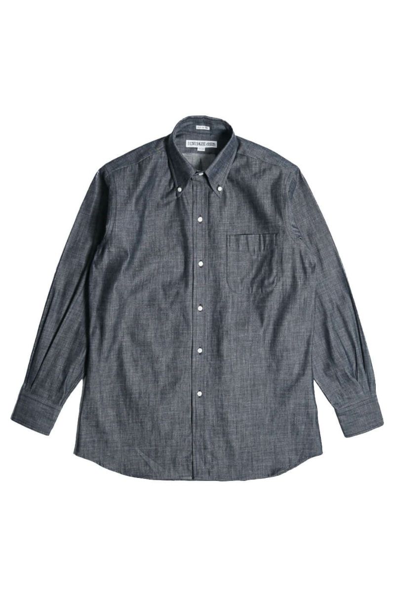 B.Dシャツの原点を作り上げた“B社”の黄金期(1960年代〜70年代)に作られていたB.D.シャツの仕様である「6つボタンのボタンダウンシャツ」をイメージし、通常7つ付くフロントボタンを「6つ」にするという別注をお願いした1着になります。