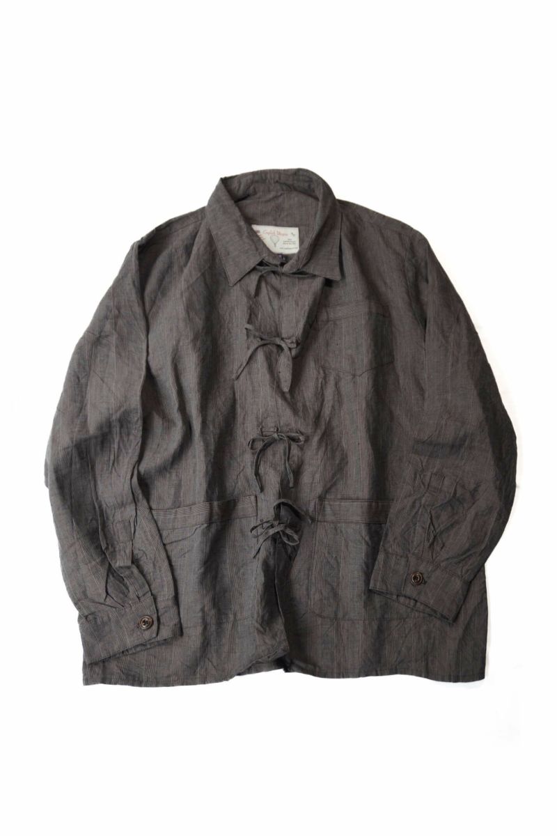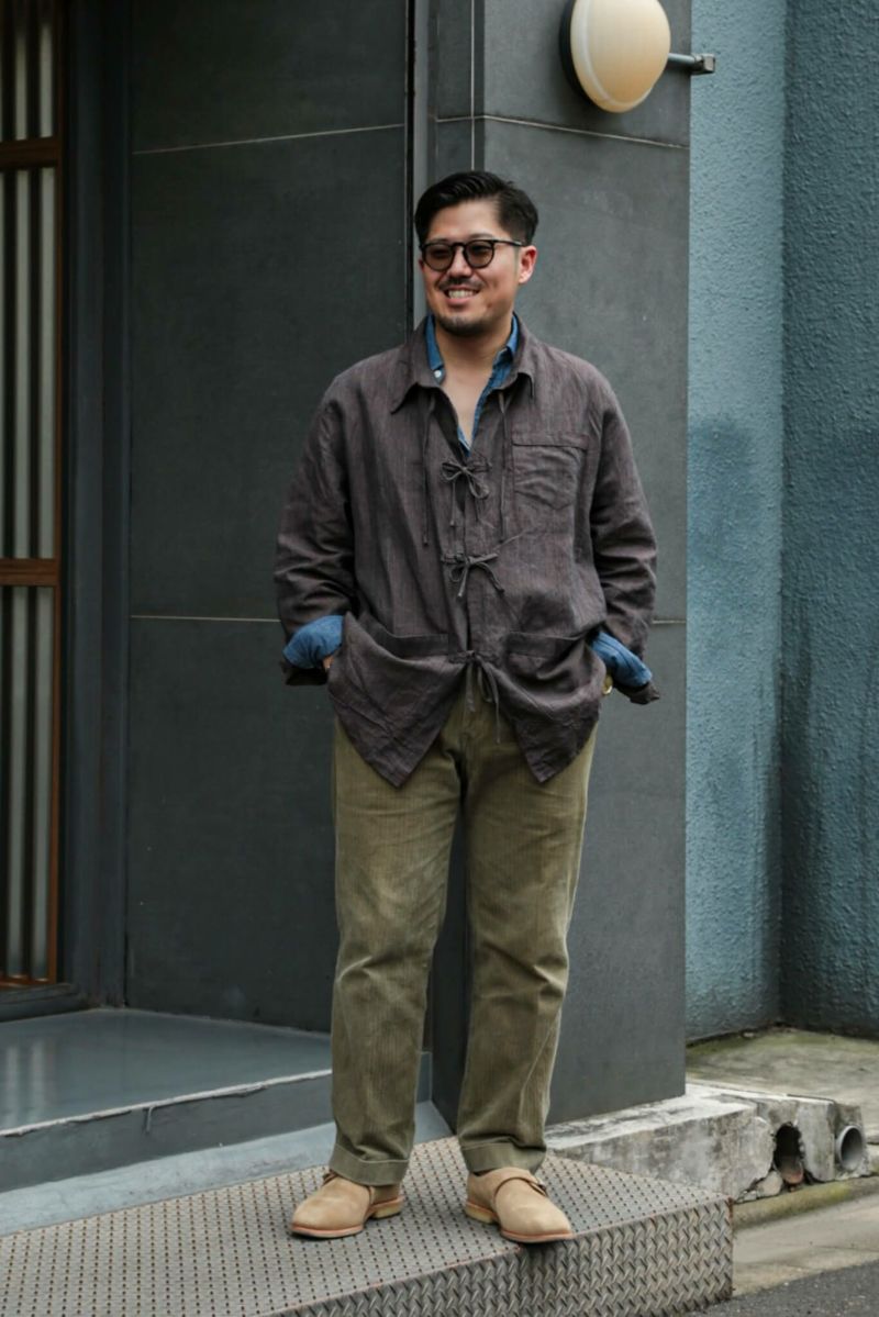 ブルガリア軍のスリーピングシャツがデザインベース。生地はアイリッシュリネンの最高峰であるスペンスブライソンを使用しています。シャツとしてはもちろん、大きめのサイズ感なのでジャケット感覚で使うこともおすすめです。