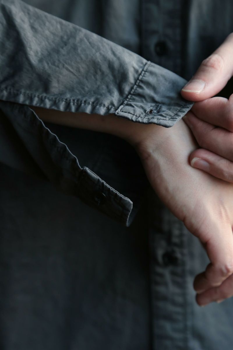 高密度に織り上げたサテン素材に特殊なピーチ加工と素材の光沢を生かせるように加工をしたオリジナル素材を墨染めしています。