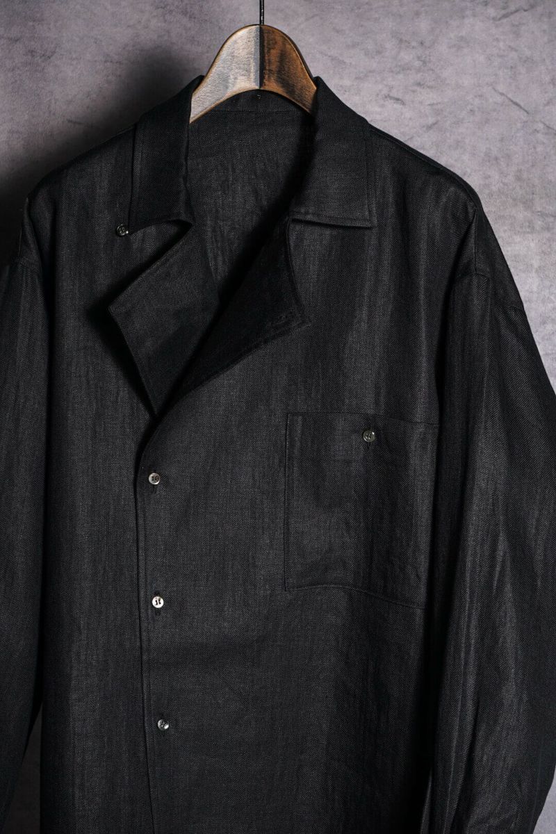 フロントを閉めて着るも良し、開けてドレープ感を楽しむも良し、襟を折り返してジャケットのように着こなすのも良しと、様々な着方を楽しめる、他には無い一枚となっています。