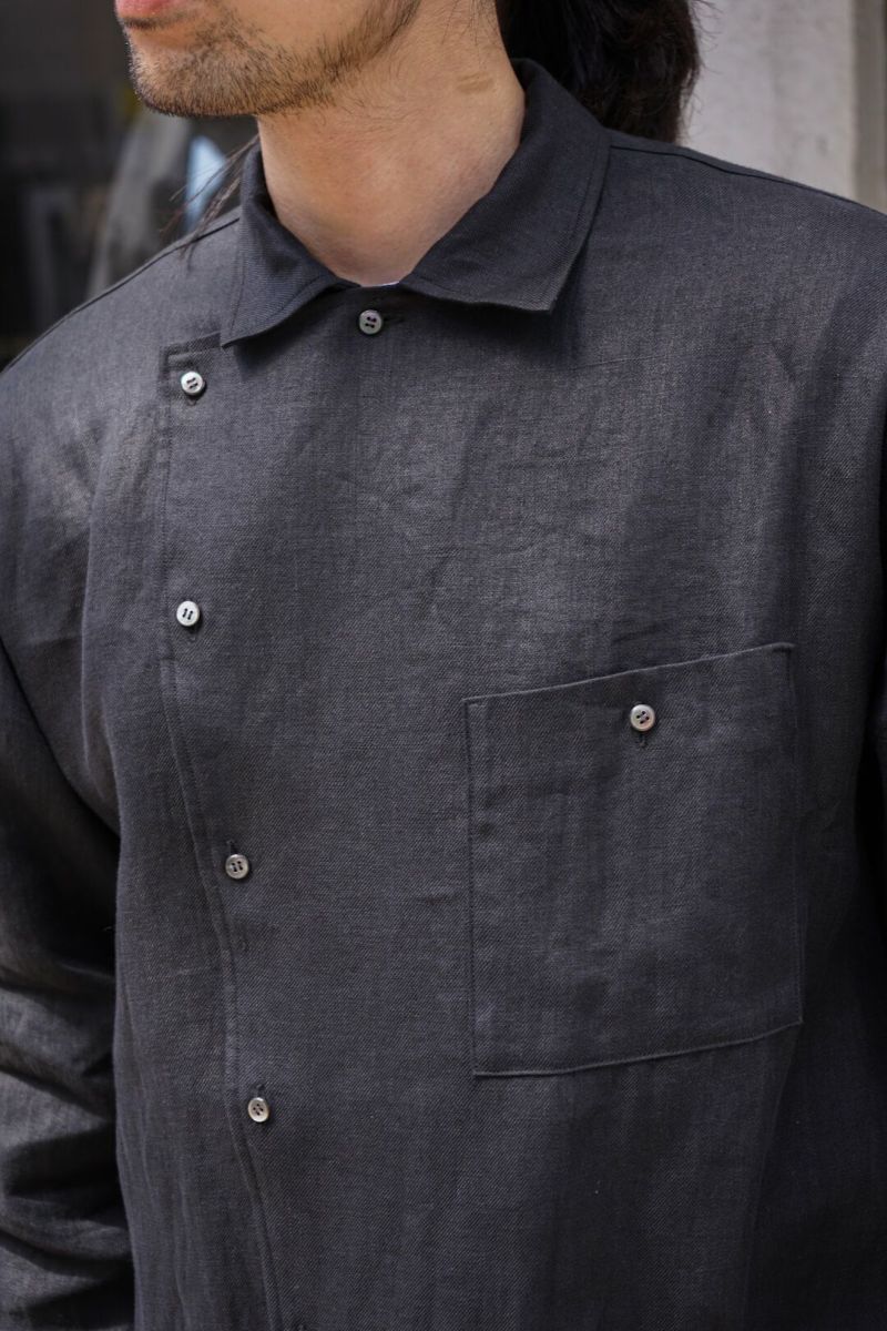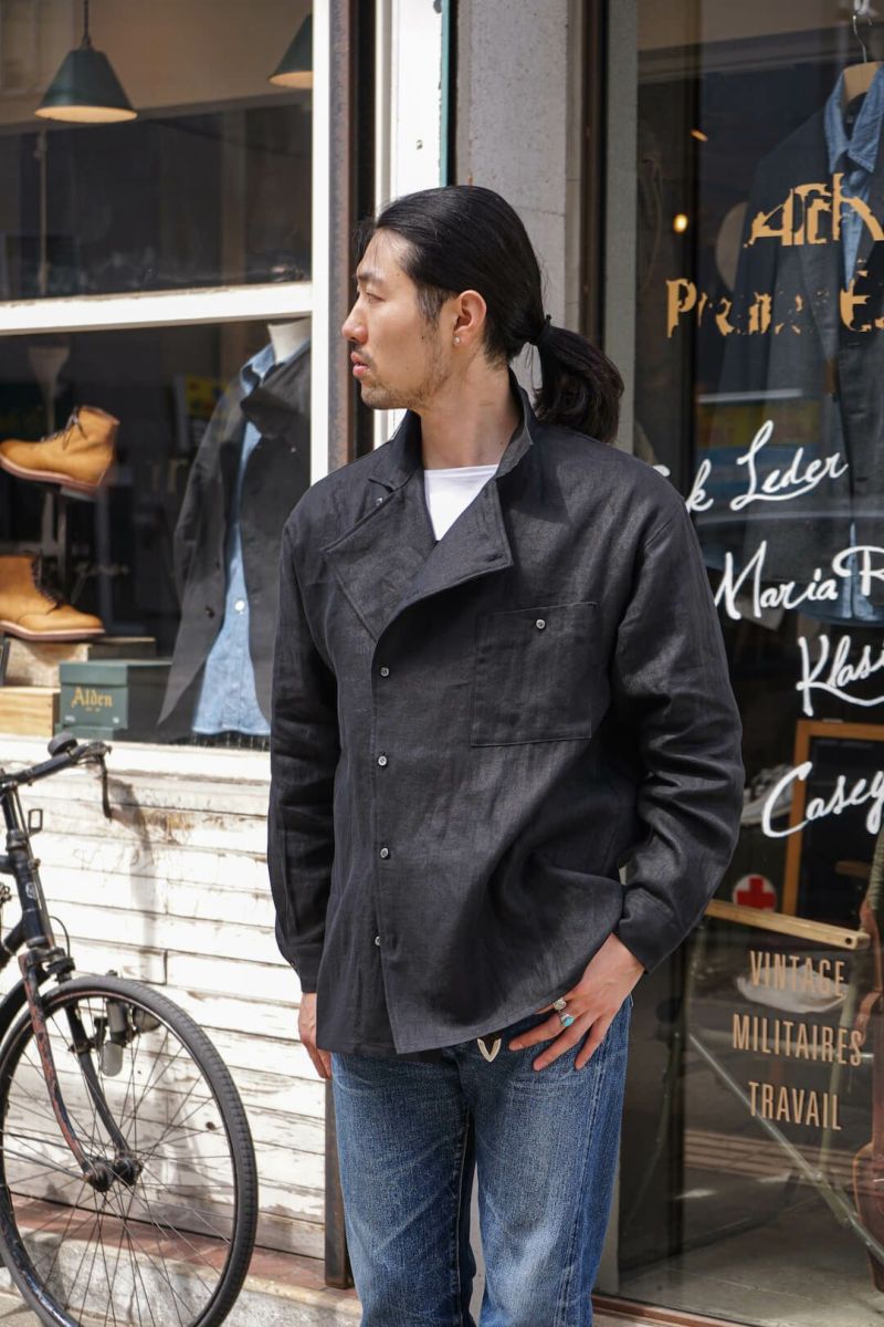 アシンメトリックなフロントデザインが特徴のフレンチヴィンテージワークウェアをベースとした、ARCHオリジナルレーベル新型のシャツジャケット。フランスらしい、洗練されたデザインを活かして製作した一枚です。