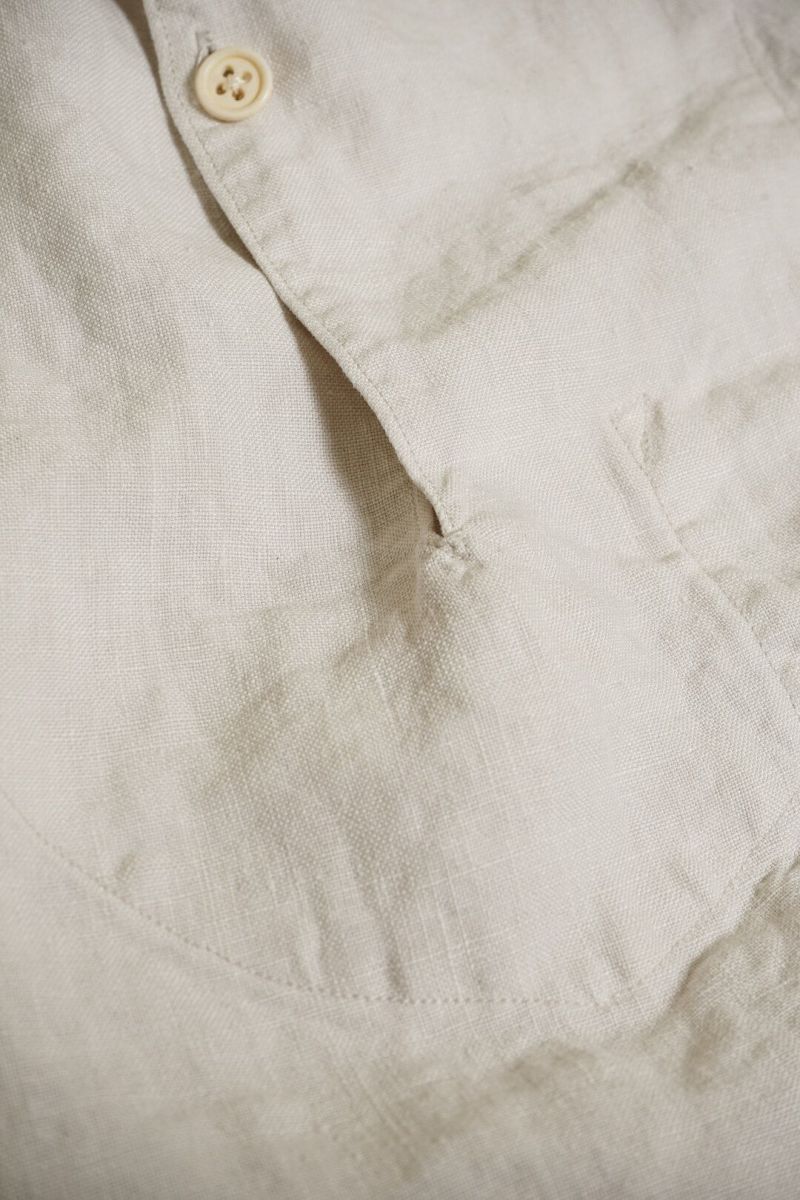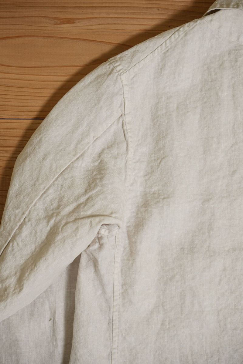 長い年月を経て変化したリネン生地の色合い、風合いを忠実に再現することに着目した「Discoloration = 変色」シリーズのセーラーシャツ。