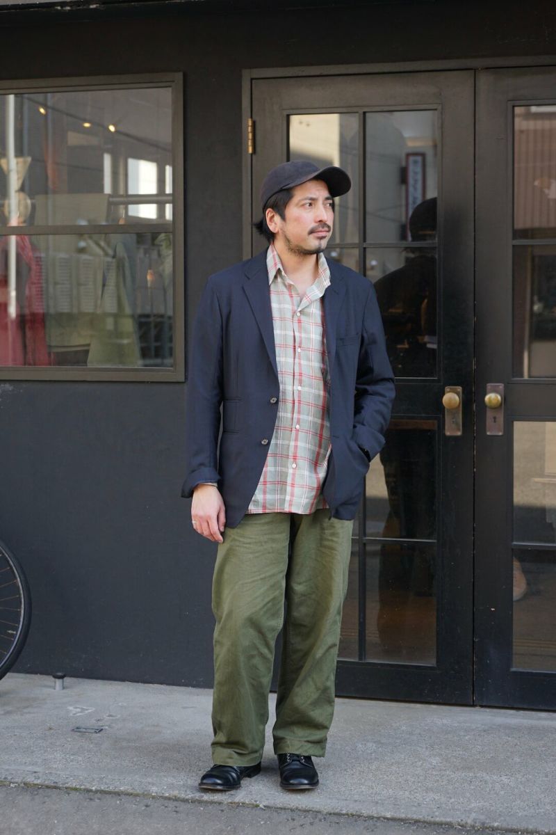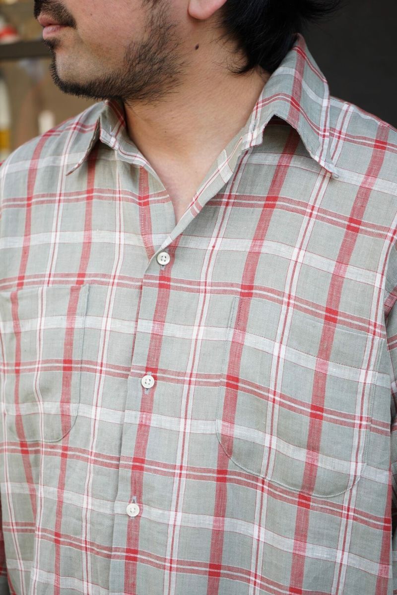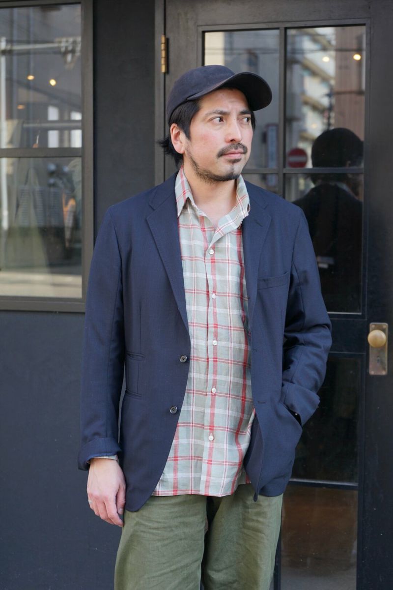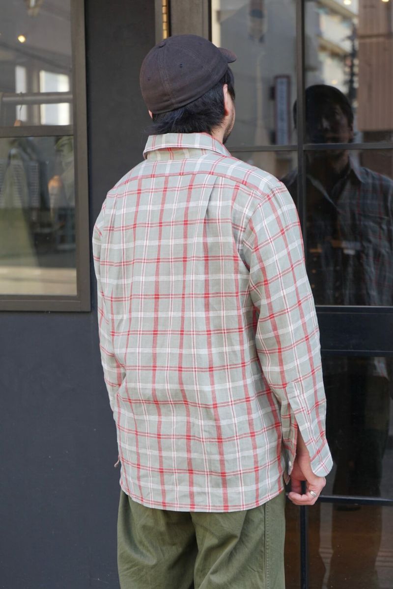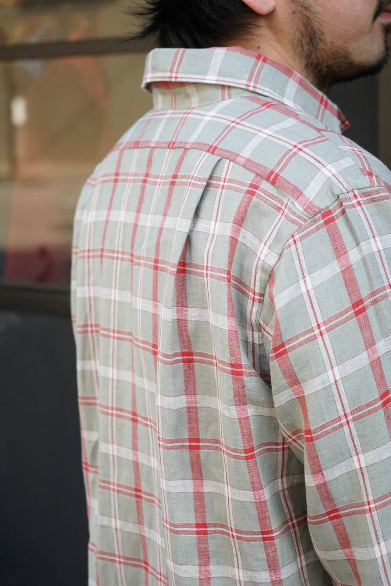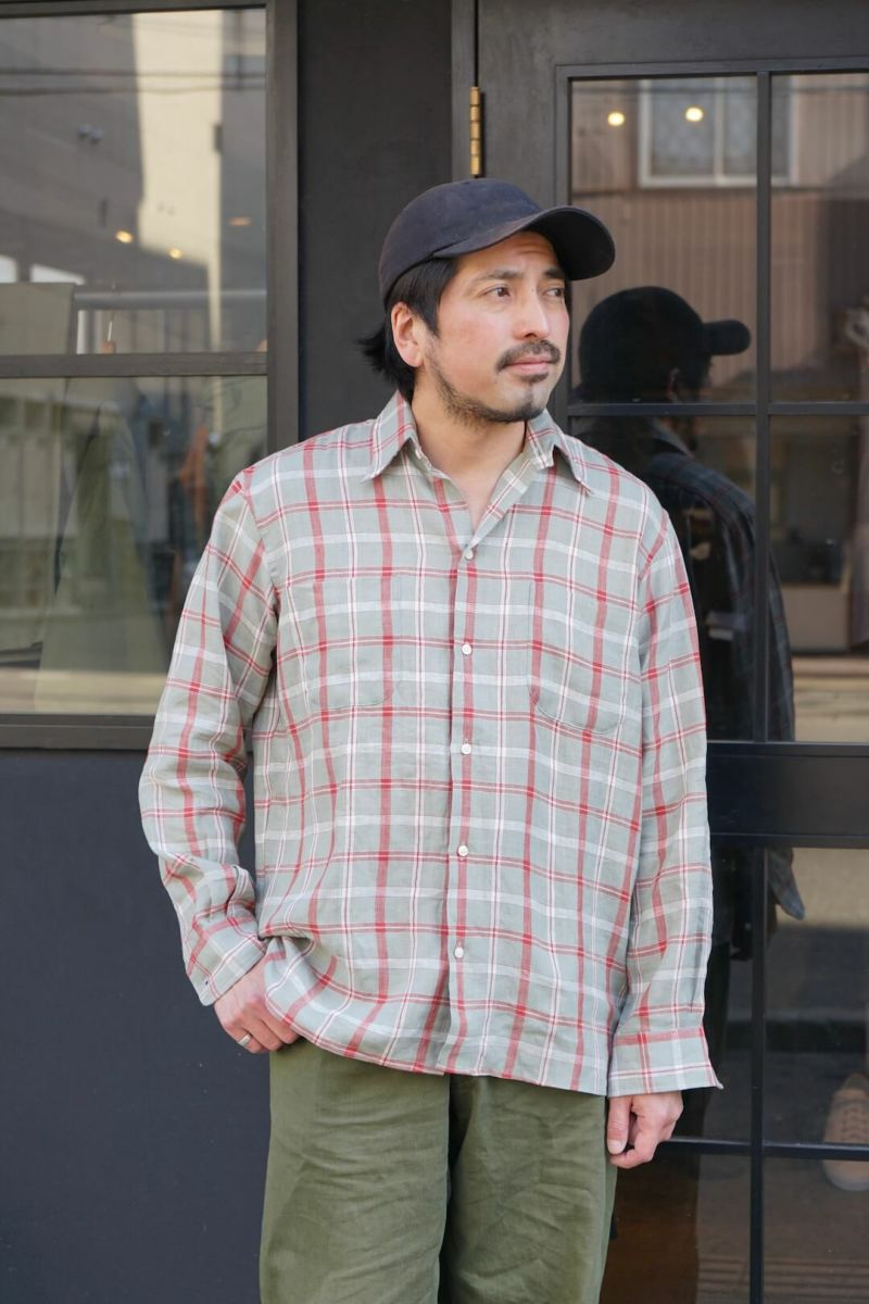 リゾート向けの襟型としてINDIVIDUALIZED SHIRTS社が開発した"CABANA"(カバナ)カラーを採用した別注シャツ。台襟が無く外にカーブを描くような特徴的な襟で、トップボタンを開けると開襟のような形にも変化します。ゆったりとしたリラックスフィット、両胸ポケットにスクエアテール、剣ボロのボタンを無くした仕様。素材にはヴィンテージライクな柄を配した限定のファブリックを採用しています。