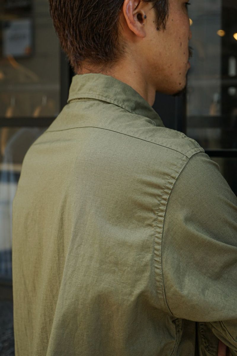 米綿が使用されたヴィンテージさながらの風合いの生地を、縫製糸、ボタンと共にアメリカへと持ち込み、アメリカ軍にユニフォームを納入している縫製工場へと製作を依頼。