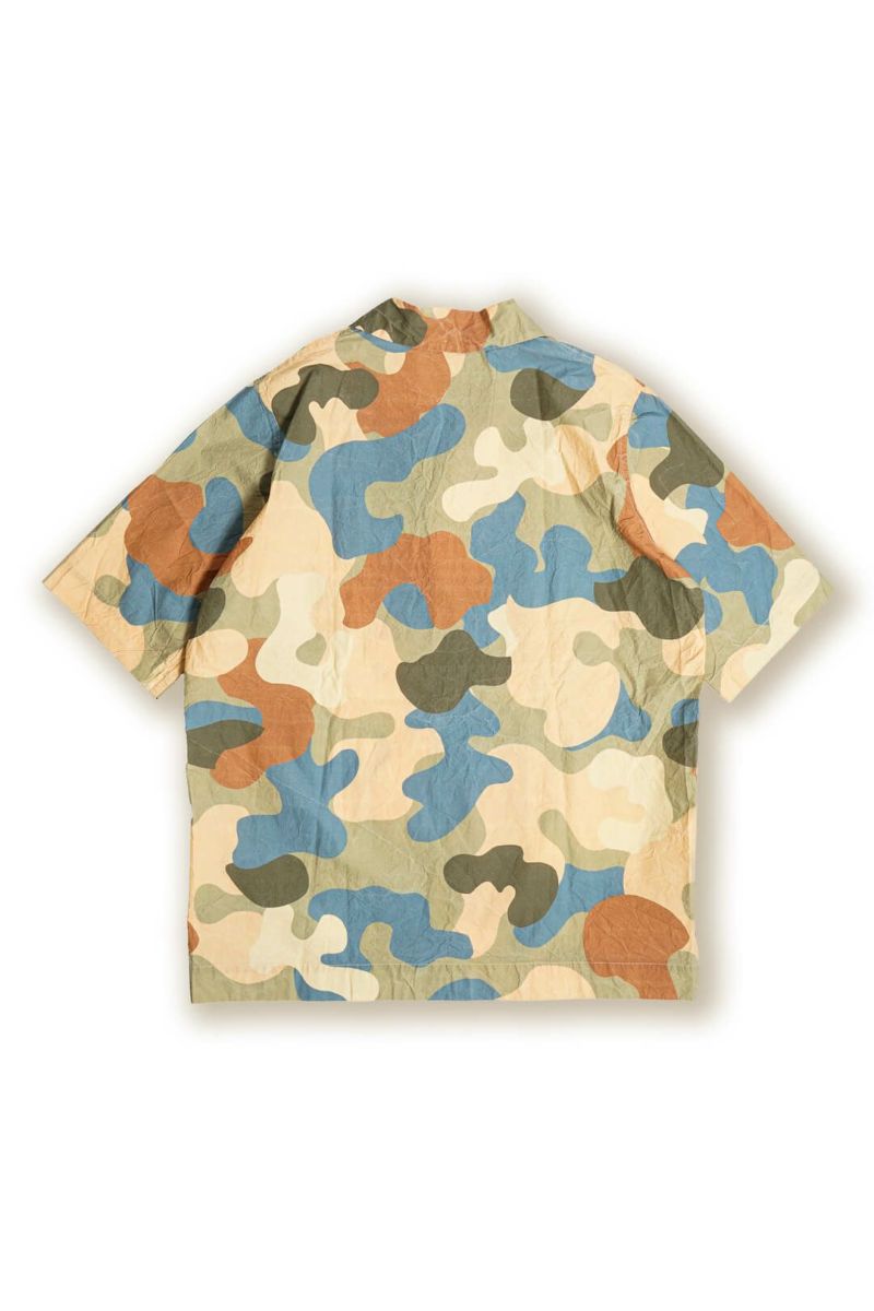 アメリカンな雰囲気のBOWLING SHIRTをベースに、ミリタリーの色味が色濃く反映されたカモフラージュ柄を落とし込んだ一枚。ミリタリーが持つ無骨さを感じさせないのはCASEY CASEY特有の柔らかい空気感にあります。色味を落ち着かせてありそうでないパターンに。フワッとしたゆったりとしたシルエットは、他にはない絶妙なシルエットを生み出しています。