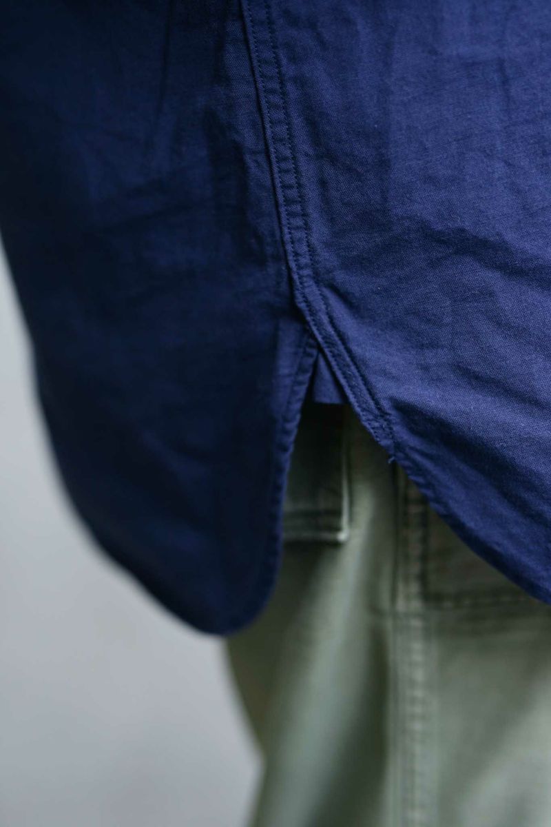 U.S.A.F.で採用されていた粗野感のあるアメリカンなオックスフォードと比べて、織り目が細かく上品な印象が特徴。さらに、ドレスシャツに使用されることの多い60番糸を用いて、3cm間に21針という細かな運針で縫製することによりシャープな印象に仕上がっています。