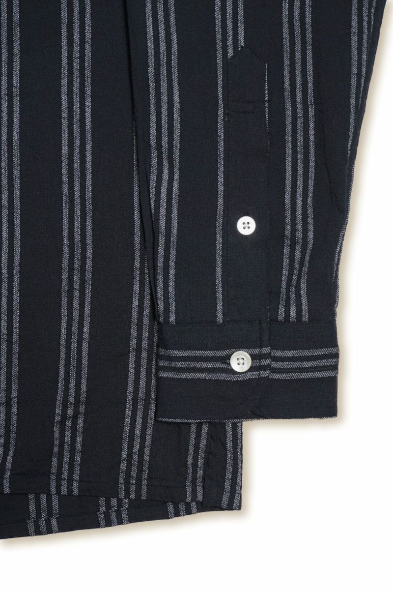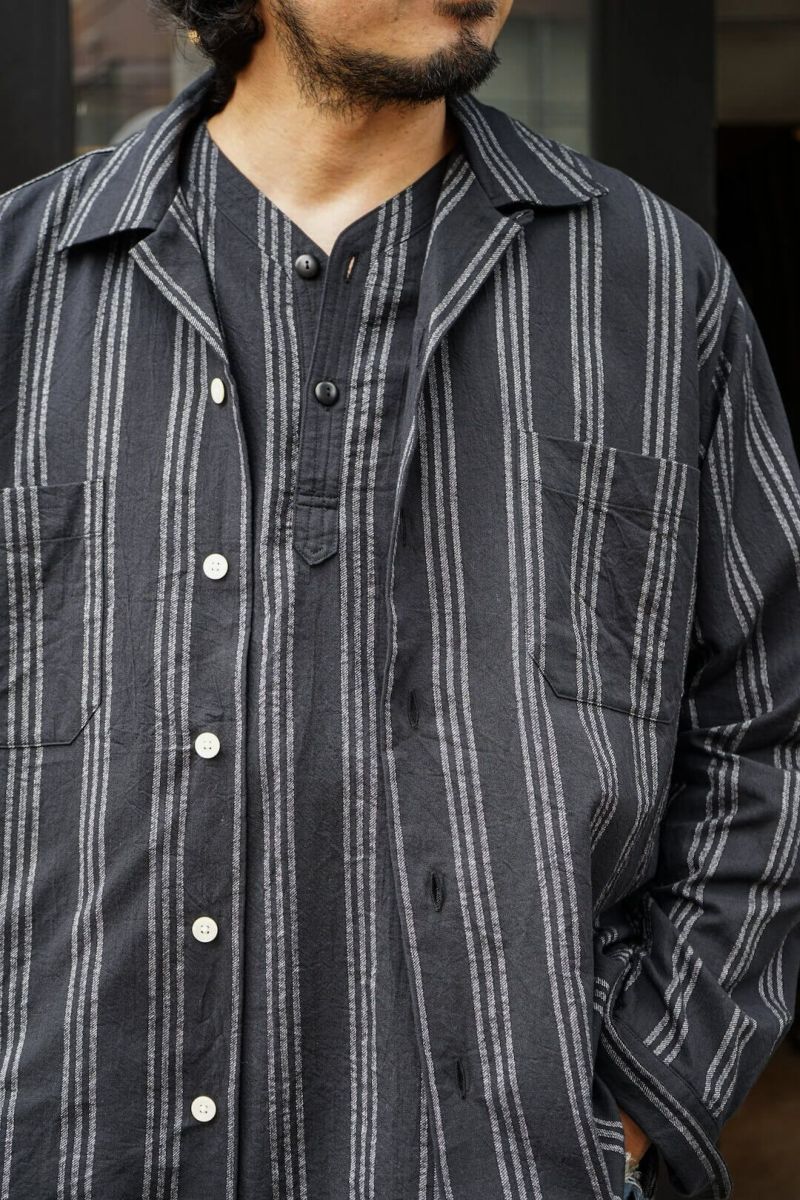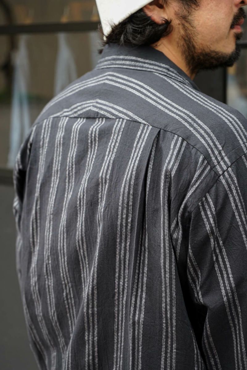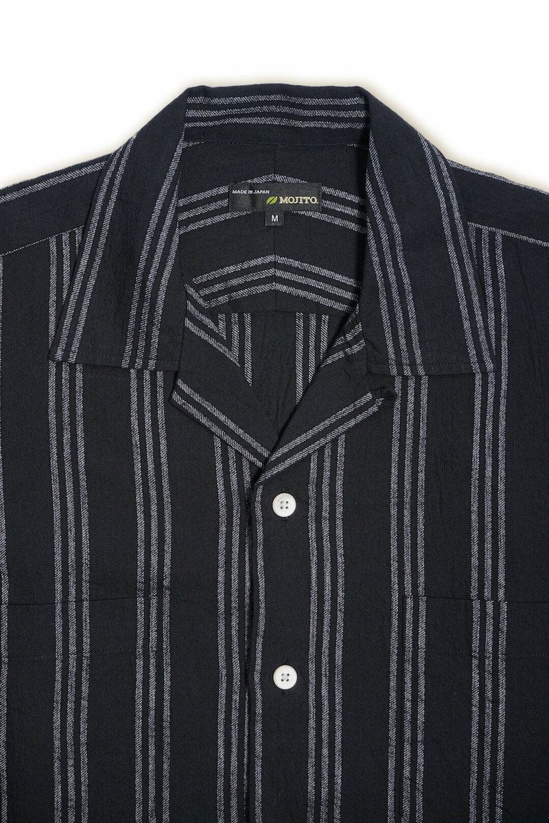 『かつて悪魔の酒として多くの作家や文化人を虜にした本物のアブサンのように「袖を通した人を虜にする着心地」』を追究したMOJITOを代表するアイテムであるアブサンシャツ。落ち着いた色合いのコットンストライプ生地を使用。さらりとした肌触りで長いシーズン着用していただけます。