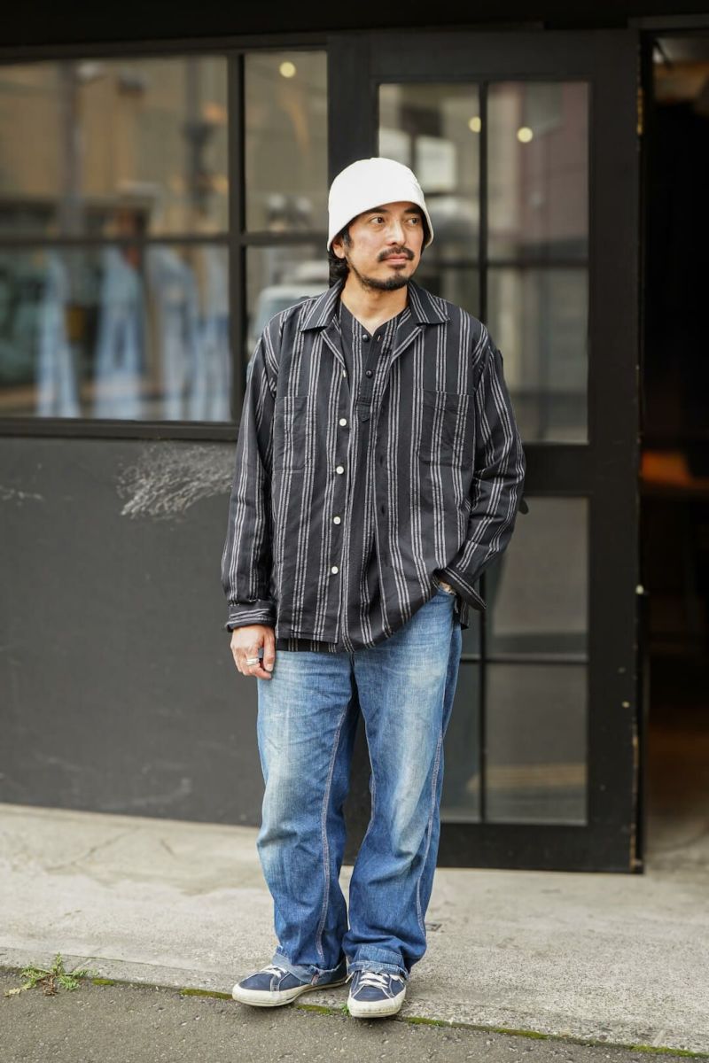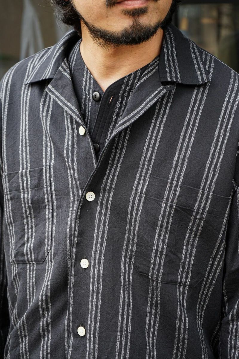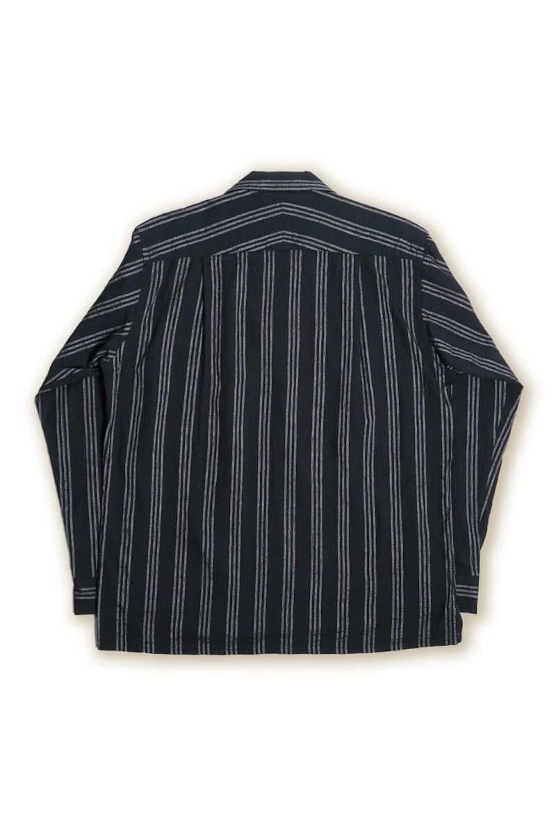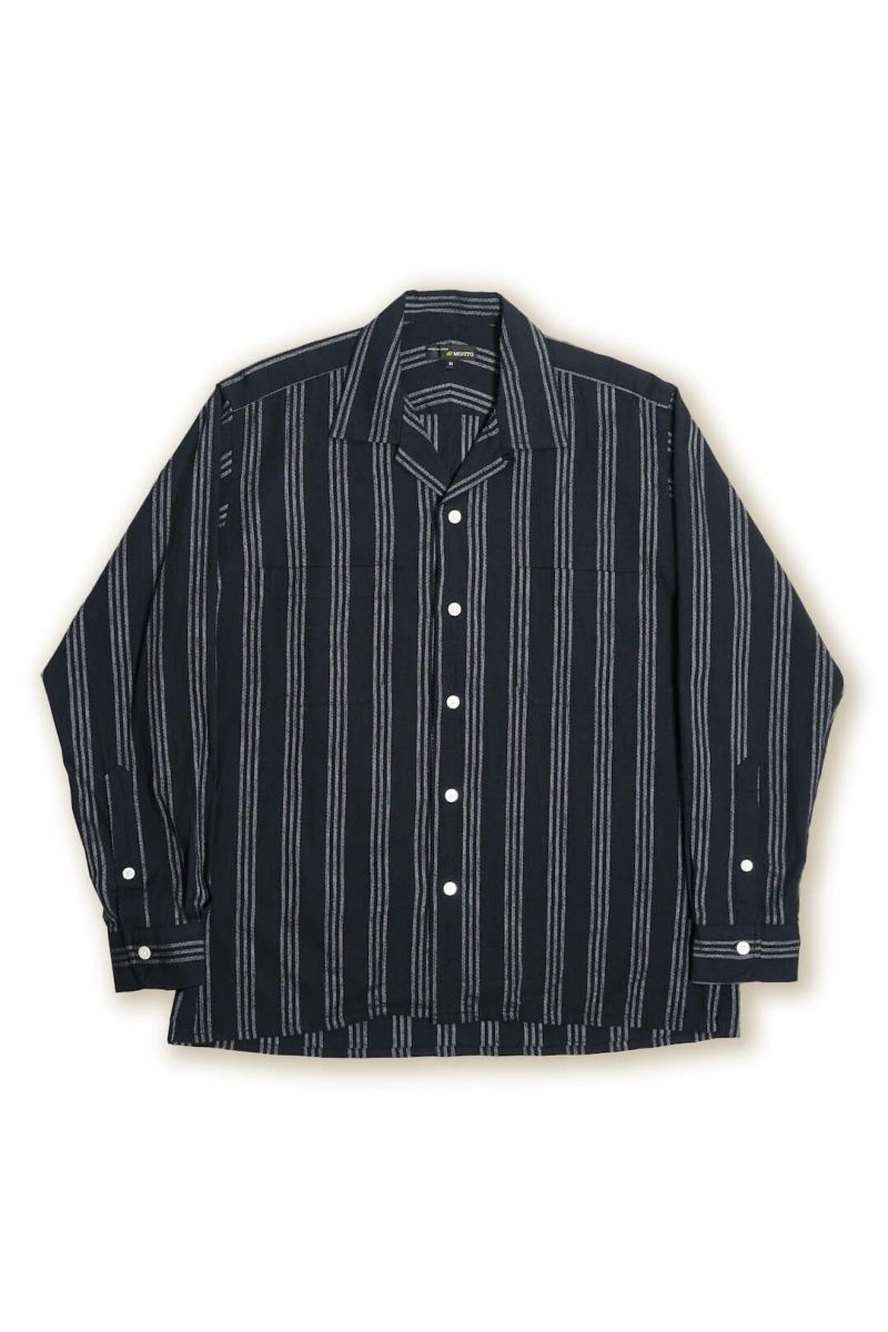 『かつて悪魔の酒として多くの作家や文化人を虜にした本物のアブサンのように「袖を通した人を虜にする着心地」』を追究したMOJITOを代表するアイテムであるアブサンシャツ。落ち着いた色合いのコットンストライプ生地を使用。さらりとした肌触りで長いシーズン着用していただけます。