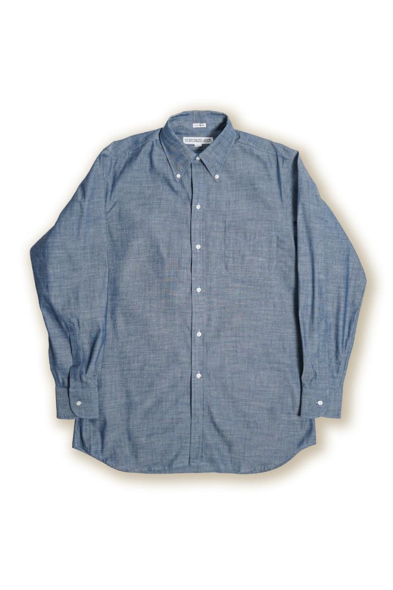 B.Dシャツの原点を作り上げた“B社”の黄金期(1960年代〜70年代)に作られていたB.D.シャツの仕様である「6つボタンのボタンダウンシャツ」をイメージし、通常7つ付くフロントボタンを「6つ」にするという別注をお願いした1着になります。