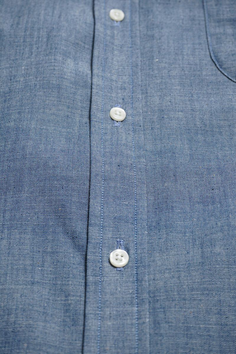 B.Dシャツの原点を作り上げた“B社”の黄金期(1960年代〜70年代)に作られていたB.D.シャツの仕様である「6つボタンのボタンダウンシャツ」をイメージし、通常7つ付くフロントボタンを「6つ」にするという別注をお願いした1着になります。