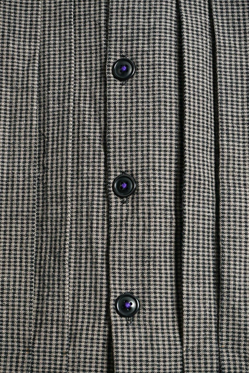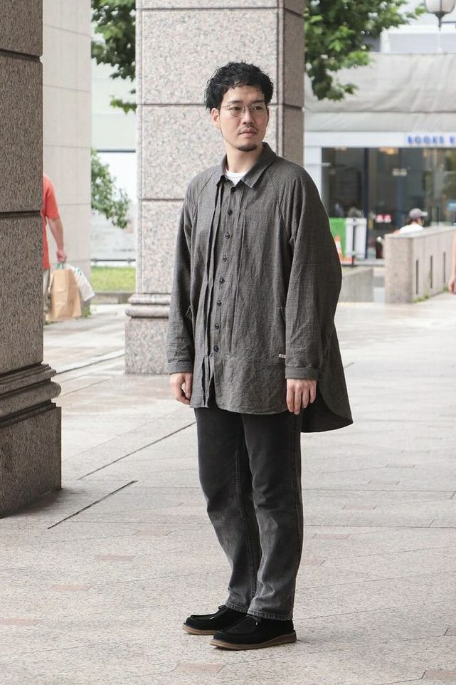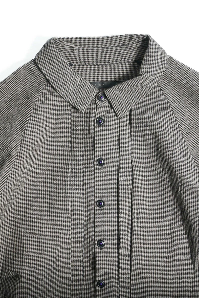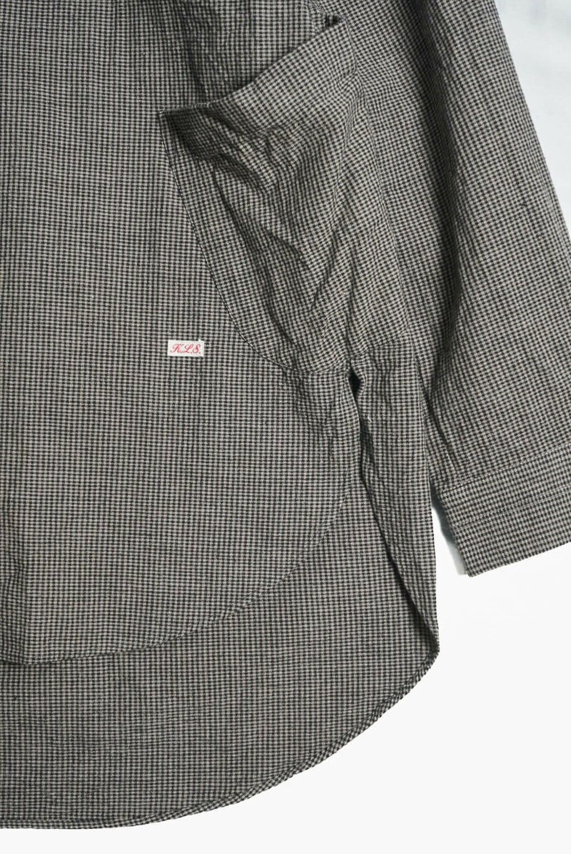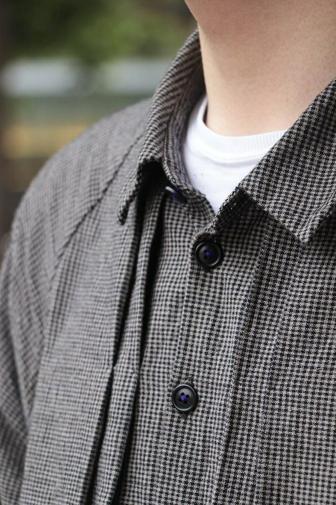 KLASICA(クラシカ) コンパクトなレギュラーカラーにバルーンシルエット、ラグランスリーブにフロントのプリーツ、脇のパッチポケットなど、特徴的なデザインが満載の1着。シャツとしてもライトアウターとしても活躍してくれます。 素材は、微妙なグレー2色に染め分けた糸とブラックを掛け合わせて、アンティークマットの日焼けした色味を目指したコットンギンガム生地。明るいイメージのギンガムを奥行きのある重いトーンで印象を変えています。ワッシャー仕上げ。独自の凹凸感は緩やかな織機で折り上げるで表現されています。 <素材> COTTON 100% KLASICA / "SH 043" GH PRICE ¥59,620(税込み) 品番 : 24F・SH43・C22