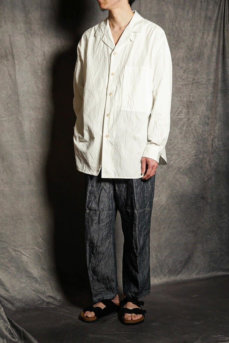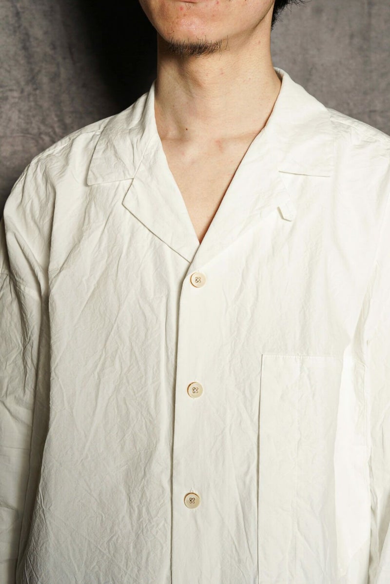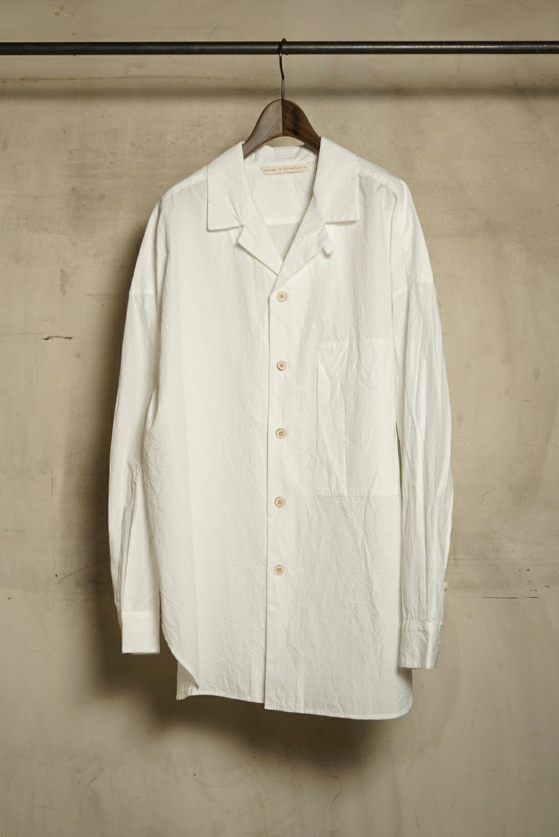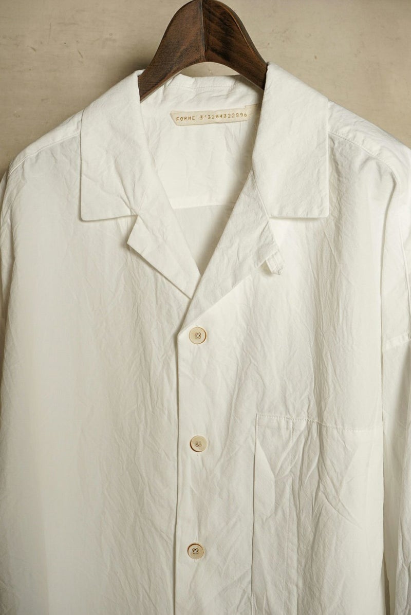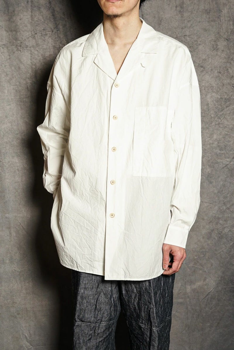 リラックス感のあるゆったりとしたシルエットが魅力的なforme d'expression定番の開襟シャツ。さらっと着こなすのは勿論、ゆとりのあるシルエットはシャツジャケット感覚でレイヤードも楽しめます。素材にはハリのあるコットン生地を使用。