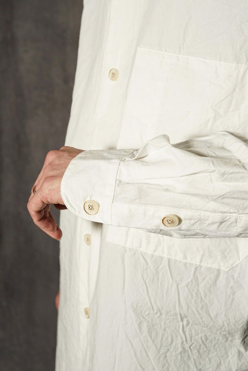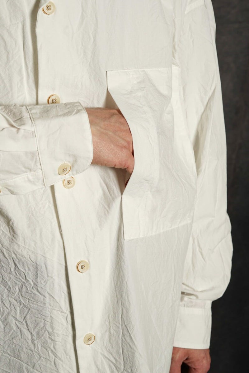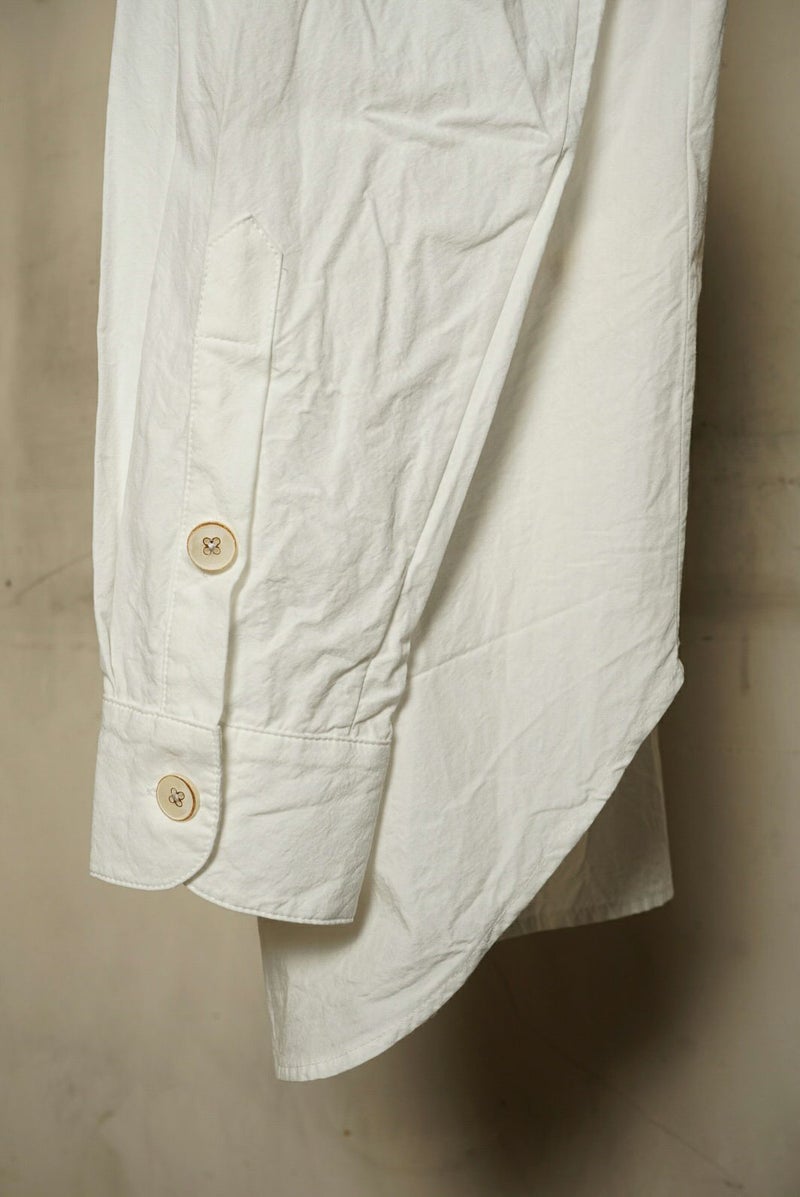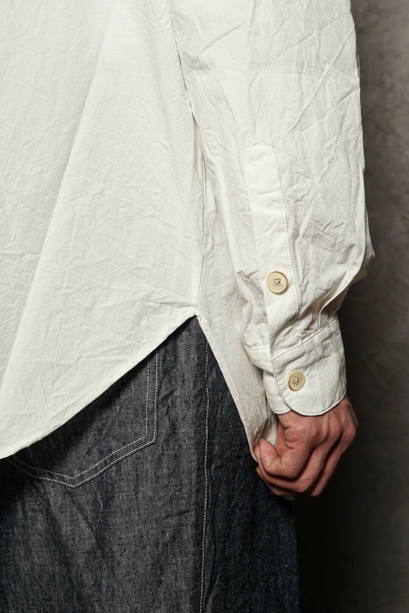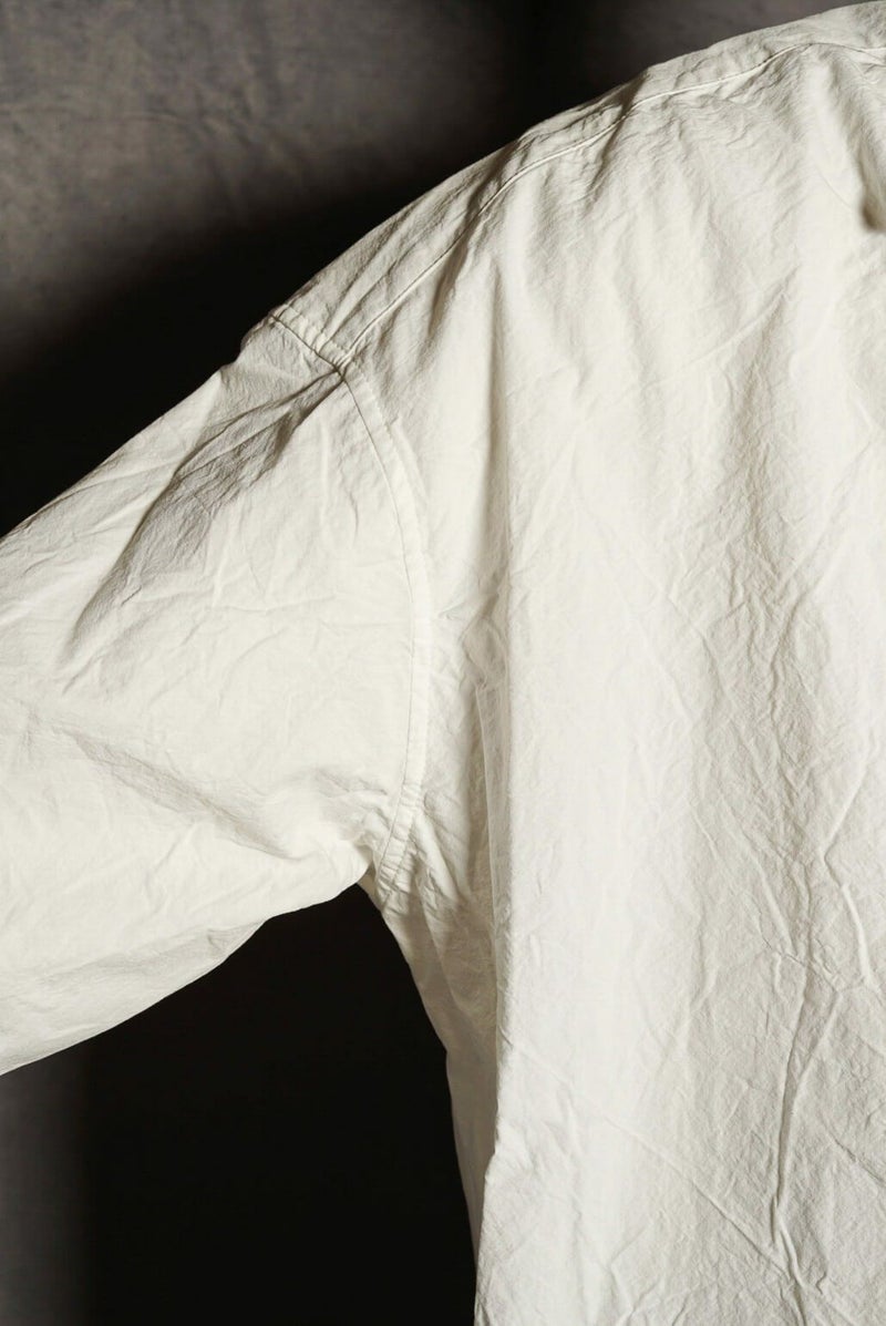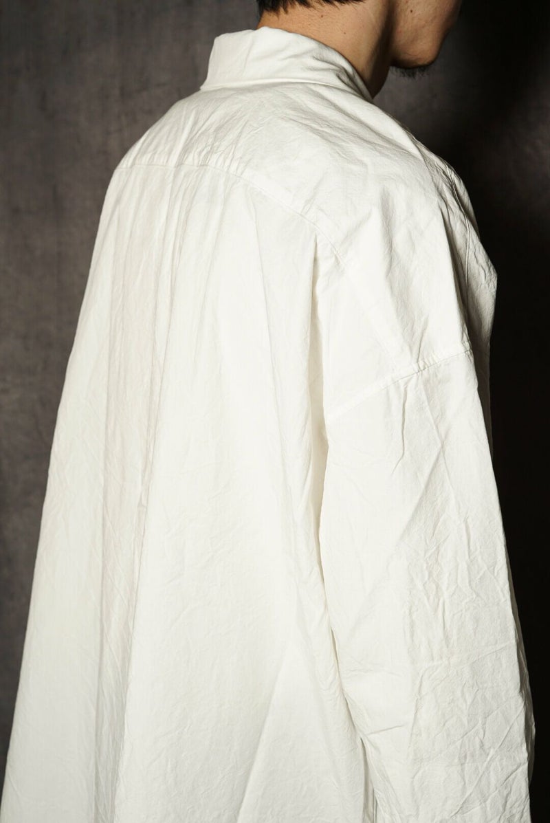 リラックス感のあるゆったりとしたシルエットが魅力的なforme d'expression定番の開襟シャツ。さらっと着こなすのは勿論、ゆとりのあるシルエットはシャツジャケット感覚でレイヤードも楽しめます。素材にはハリのあるコットン生地を使用。