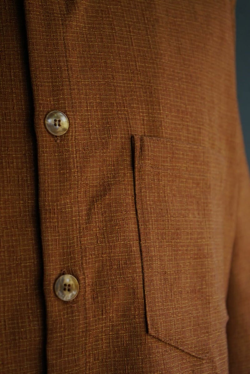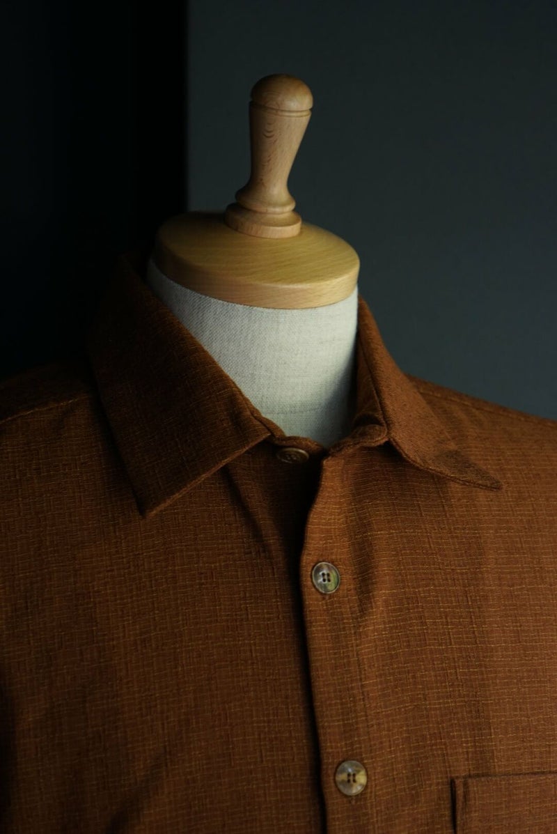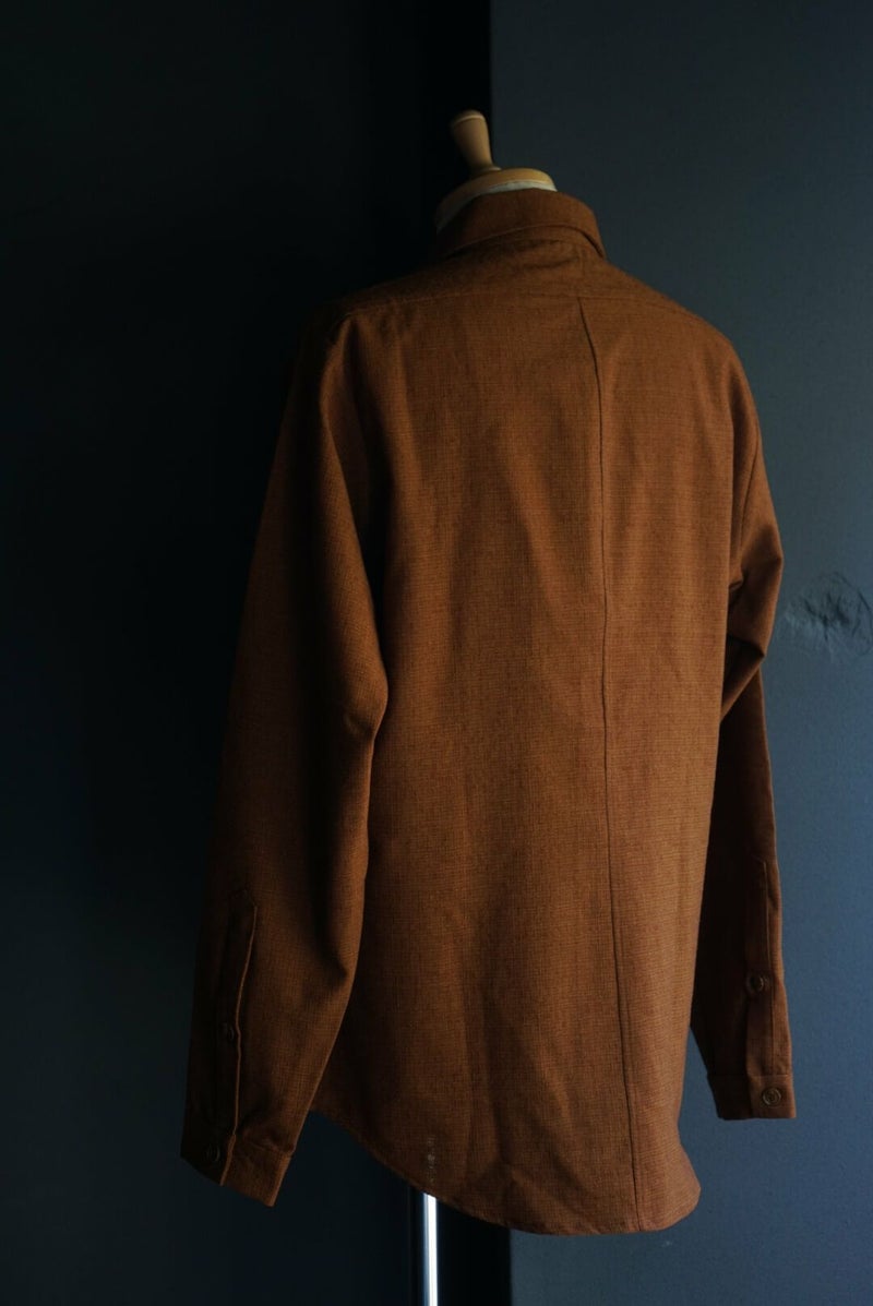 1930年代に実際に存在したウール生地を使用。 凹凸感があり、ざらっとした生地ながら、WOOL特有の光沢感も併せもっています。 また、こちらのファブリックはドイツ、ミュウヘンのコレクターから入手したものであり、10着しか作ることができない大変希少な生地となっております。 ボタンには1点1点表情が異なるVINTAGEのボタンを使用。 生地の表情と相まって、プレーンな形のシャツなのにそう見えない。そんな不思議なシャツです。 WOOL 100% ※こちらの商品はブログでも詳しくご紹介しております。 https://archstyle.tv/tokyo/archives/24067/ FRANK LEDER / 30’s VINTAGE WOOL PLAIN SHIRTS Price ¥86,900(税込)
