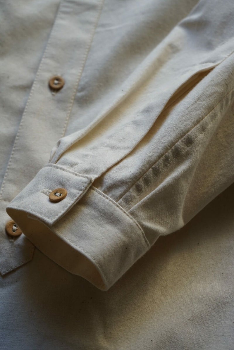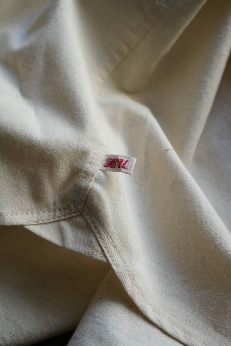 1960年代はベッドシーツなどとして使われる生地の為、当然ではありますがとても丈夫です。 VINTAGEのボタンも包んでいる布が少しずつ破れて、生地と共に経年の変化を見せてくれます。