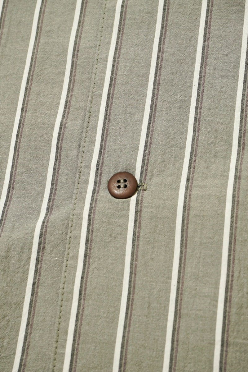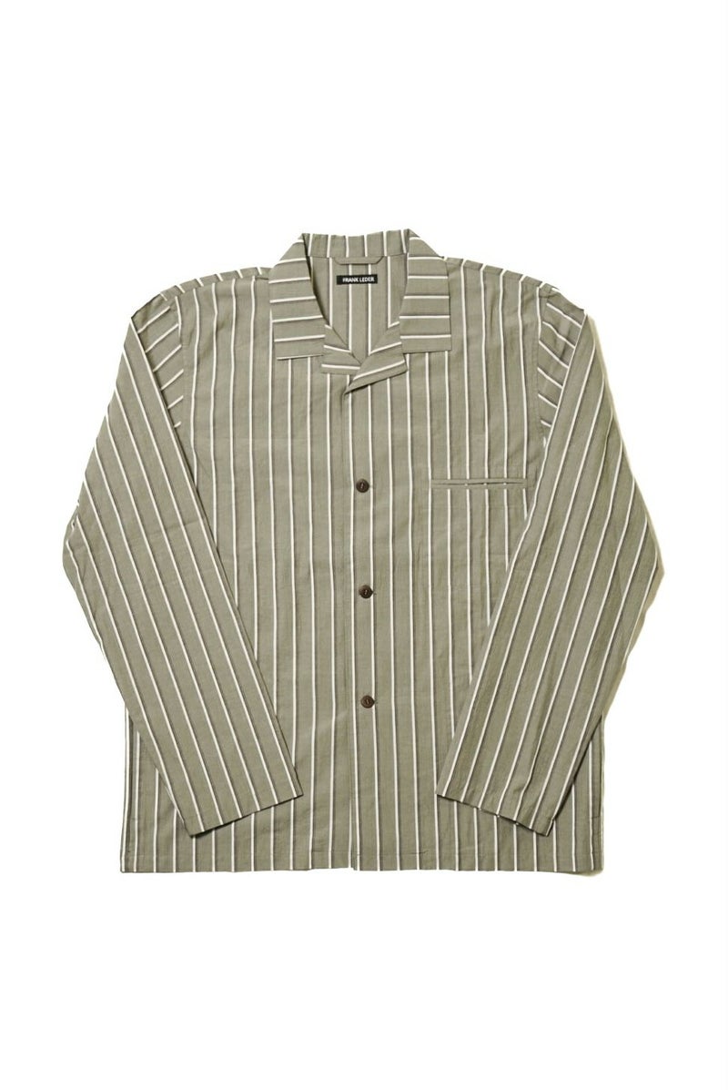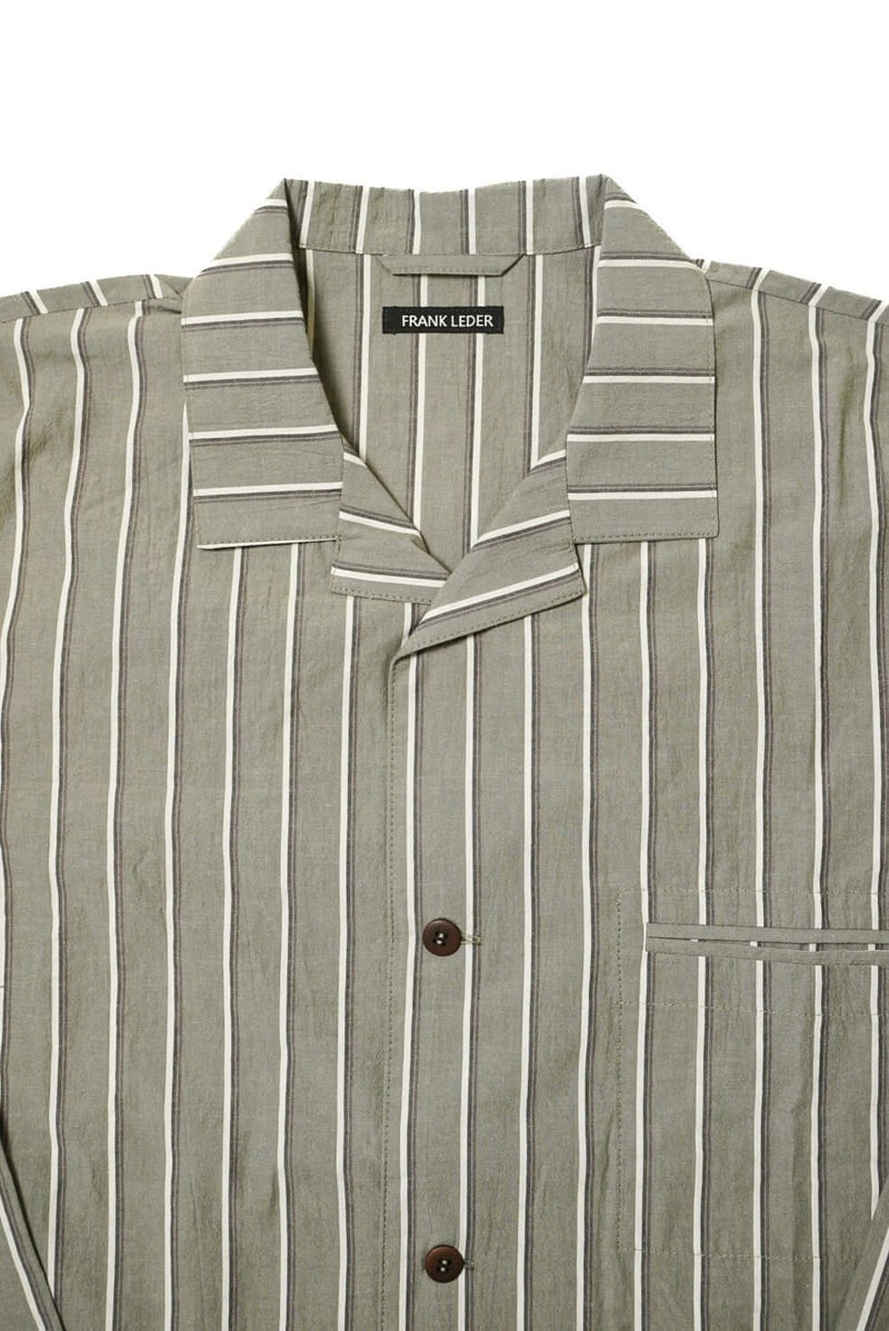 FRANK LEDER(フランクリーダー) "Bernburg / Saale(ベルンブルク / ザーレ)" SPRING / SUMMER このコレクションは、LOOK BOOK を撮影した町の名前にちなんで名づけました。Bernburg/Saale ベルンプルク/ザーレ。ザーレとは、この町を流れる川のことで、その名の通り、ルネッサンス時代の城であるBurg(ブルク)はありますが、ありがたいことに、改装業者の熱心な手はあまり加えられておらず佇まいがあります。1950年代のような雰囲気のドイツの小さくて面白い町を旅する男の物語。父が健業の宇生だった頃のことを思い浮かべ、お金はなくも、過去と現在の健物の歴史と意味を学びたいと熱望し、叔父から借りた自転車と、旅の計画を立てるための道路地図、空腹に耐えるための釣りを持ち、参考にするための写真を撮りながら旅をする物語です。このように学生時代に旅をするというコンセプトは、特に戦後の1950年代に流行したものです。人間が心と知識を広げるための旅です。 洗いがかけられた柔らかなコットンストライプ生地を使用したオープンカラーシャツ。サイドにポケットが付くのでシャツジャケット感覚で着用できる一枚です。 <素材> 100% COTTON <生産国> MADE IN GERMANY FRANK LEDER / WASHED STRIPED COTTON SIDE POCKET SHIRTS PRICE : ¥86,900(税込み) 品番 : 0912033 WCG 3