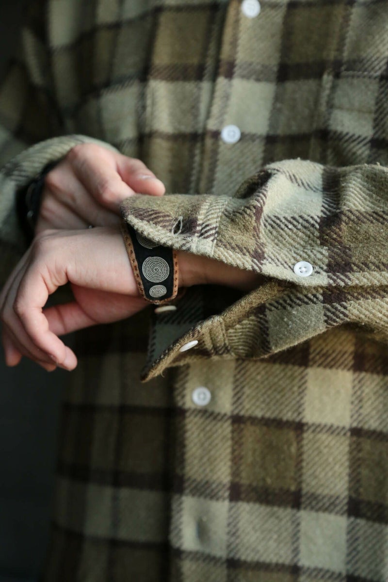MOJITO(モヒート) 『かつて悪魔の酒として多くの作家や文化人を虜にした本物のアブサンのように「袖を通した人を虜にする着心地」』を追究したMOJITOを代表するアイテムであるアブサンシャツ。 生地は秋冬らしい暗めな配色のチェック柄。ポリエステルが入ることでピリングができ、着こんでいくほどに味わい深い表情になっていきます。 <素材> COTTON 50% / POLYESTER 50% <生産国> MADE IN JAPAN MOJITO / ABSHINTH SHIRT Bar.2.0_Jazz nep check PRICE : ¥31,900(税込み)