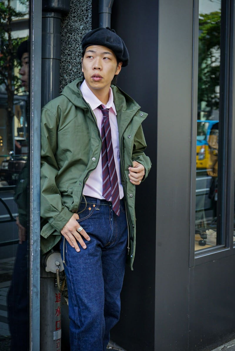ややゆったりとしたシルエットですが、ジャケットのインナーとしても重宝するかと。ジャケパン等のスタイルにも相性抜群です。ドライタッチの生地は通年を通して気持ちよく来ていただけます。
