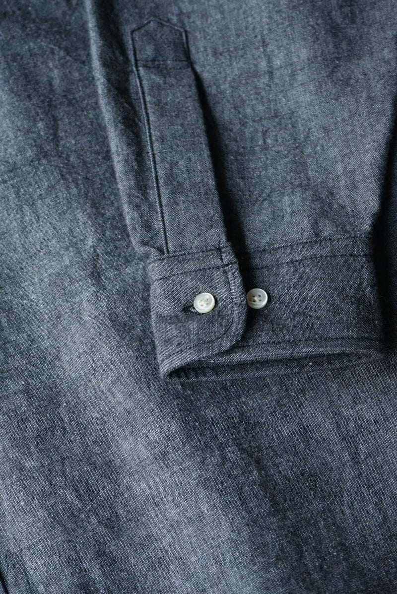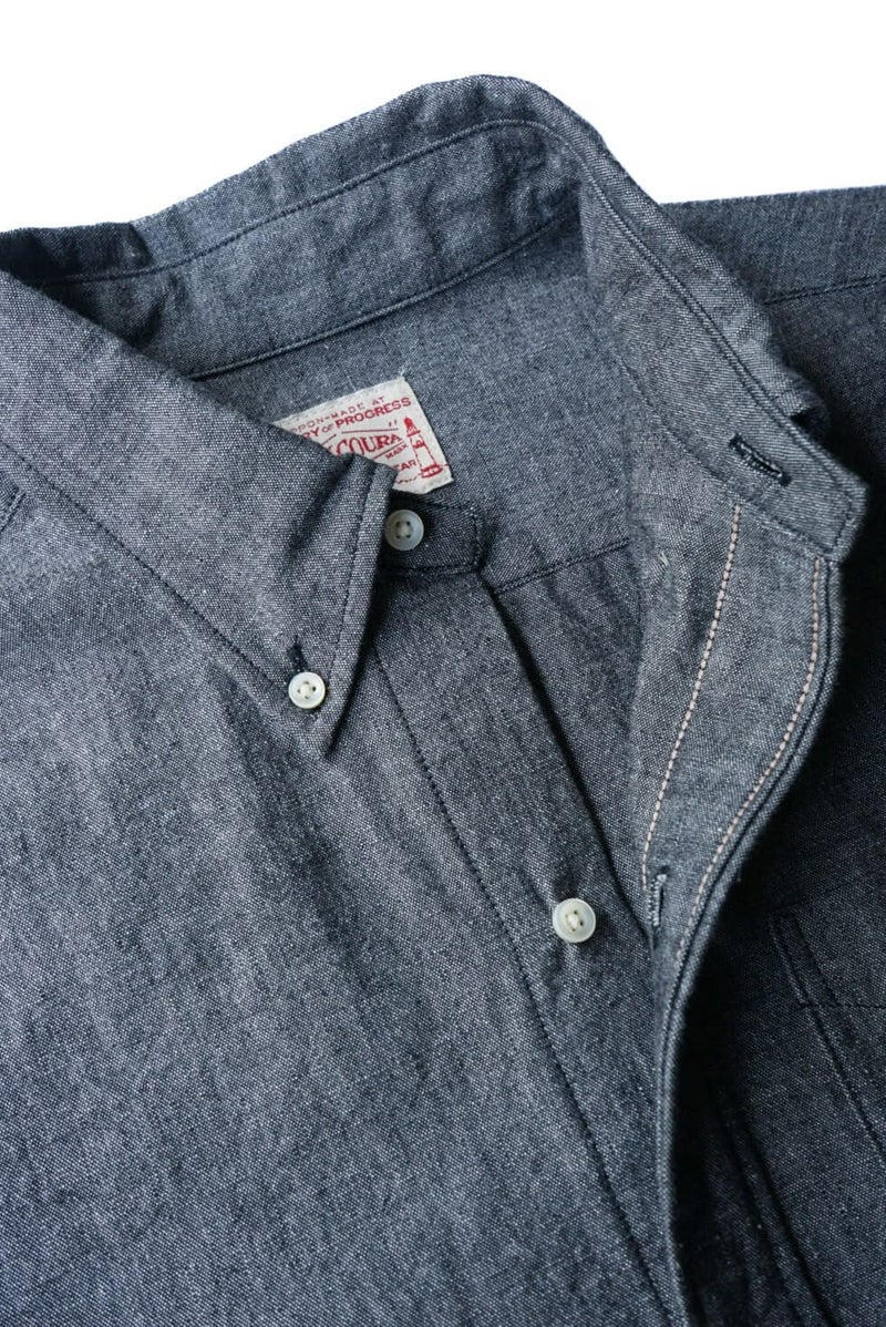 BONCOURA黎明期から常に愛され続けている定番型BDシャツを新たな解釈で再構築。シルエットはリラックスシルエットながら、袖や着丈、身幅のバランスがちょうど良く、野暮ったさを感じさせないシルエットでシャツの上からでも着用していただけます。高めの台襟やアジャスタブルカフス、ボックスプリーツもアメリカのシャツを彷彿させます。6ボタン、スリーフィンガーロールなど男ごころをくすぐるディテールも。