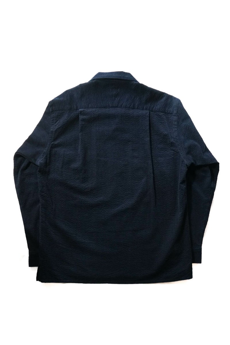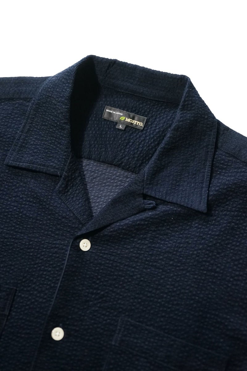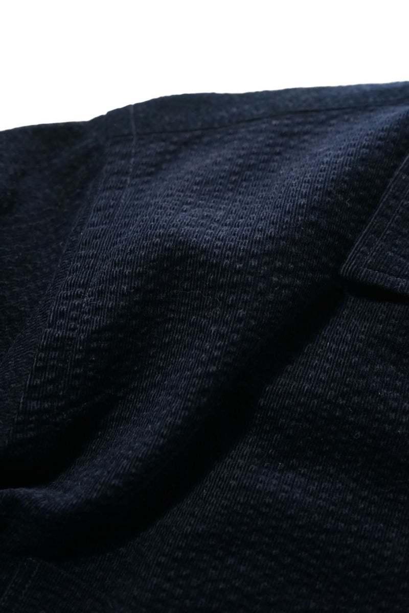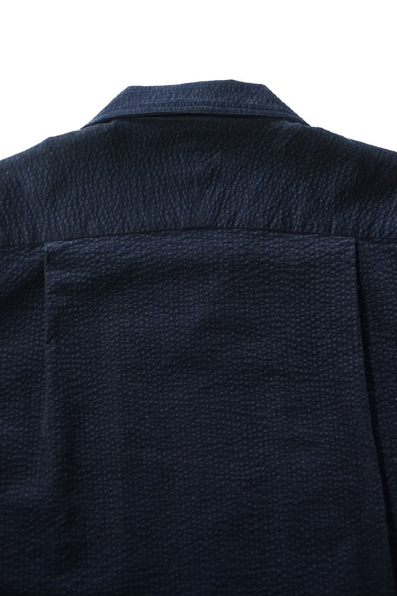 シアサッカーとコーデュロイを合わせたような、リップルコードという素材を使用。『Ripple(リップル)=さざ波』 という意味で、タテ方向に走る細畝のコーデュロイに対してヨコ方向にでている畝が特徴です。“MOJITO”の大定番アイテム”ABSHINTH SHIRT”ですがリップルコードの生地感で、また全然違った印象の一枚です。