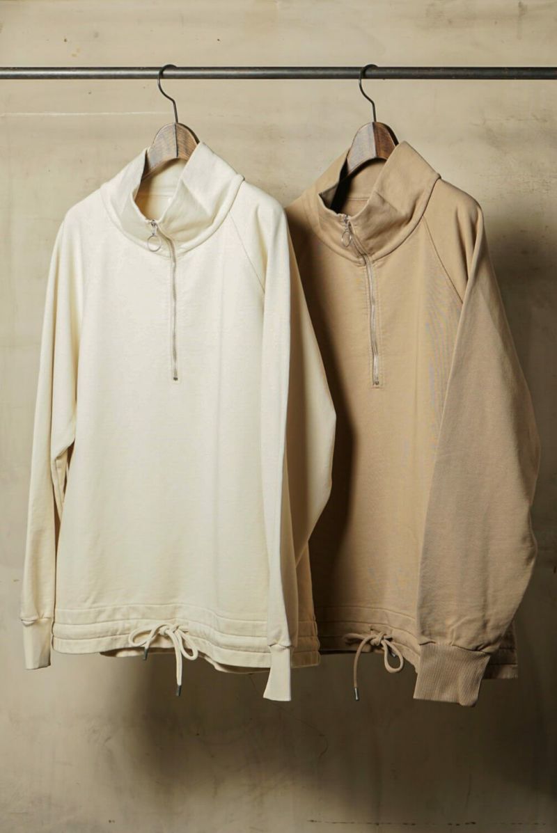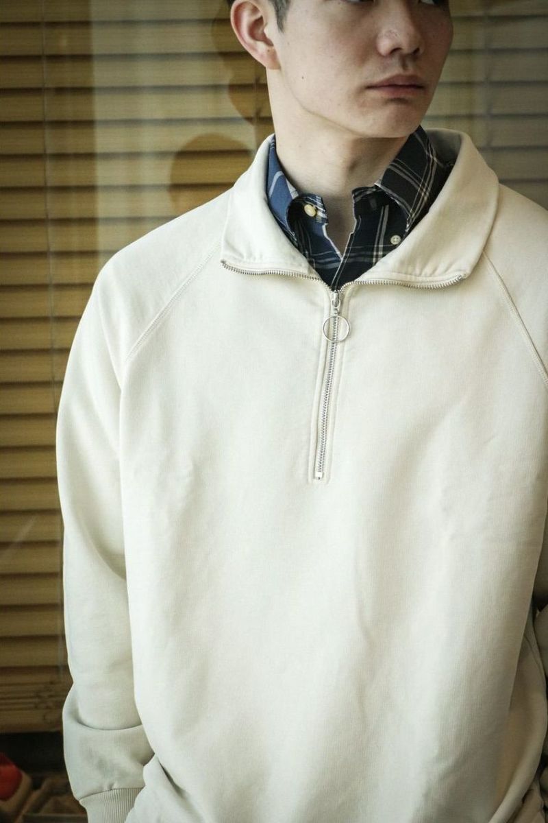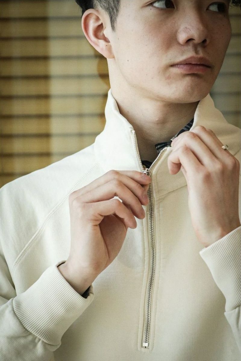 Parages(パハージ) ワークウェアとスポーツウェア、そしてテーラリングを融合させ、最新かつ時代を超越した機能的なアイテムで構成される、持続可能なワードローブを創造するフランス発のブランド。高品質な素材と製造、モダンで快適なカッティング、繊細なディテールが特徴となっています。 こちらは、ゆったりとしたシルエットのハーフジップスウェットシャツ。襟はスタンドでも折り返しても着ていただけますので、さらっとカットソーと合わせても、インナーにシャツを合わせても良し。裏起毛ではないので長いシーズン着用できるのも特徴です。 <素材> COTTON 100% <生産国> MADE IN PORTUGAL Parages / BATTLE ZIPPED-COLLARED SWEAT PRICE : ¥27,500(税込み)