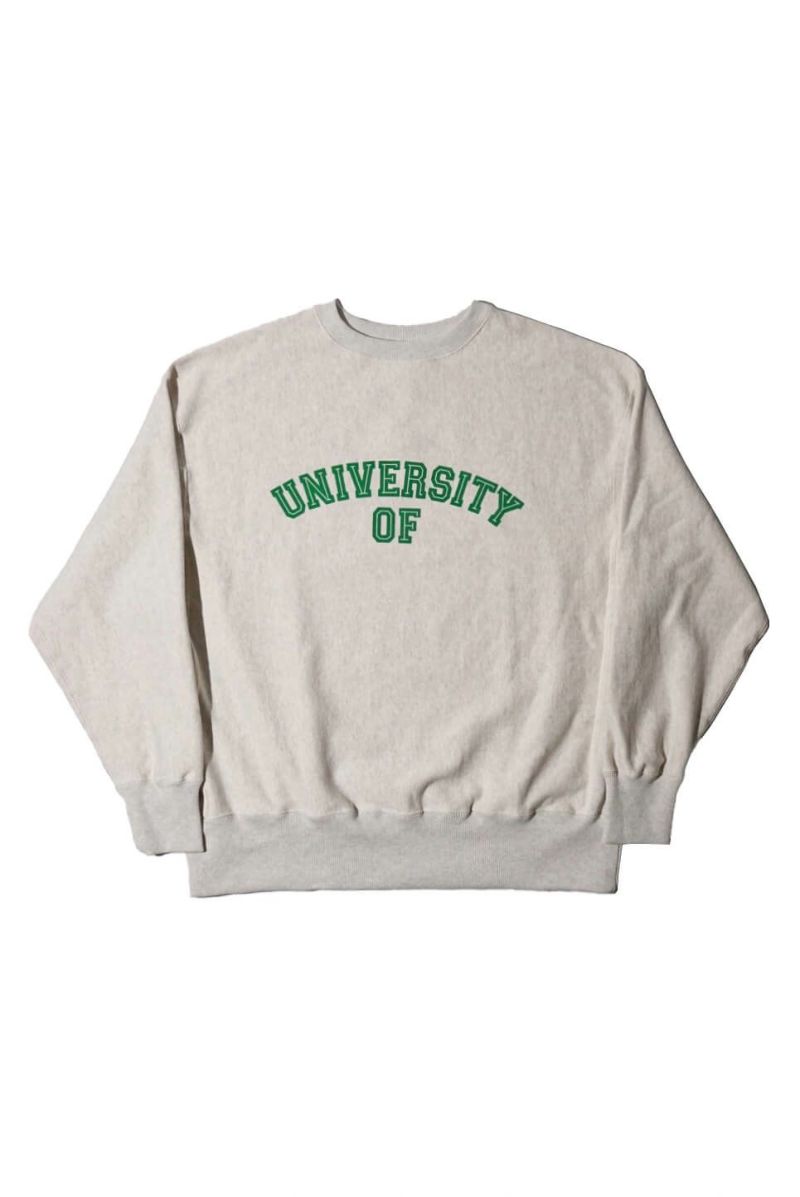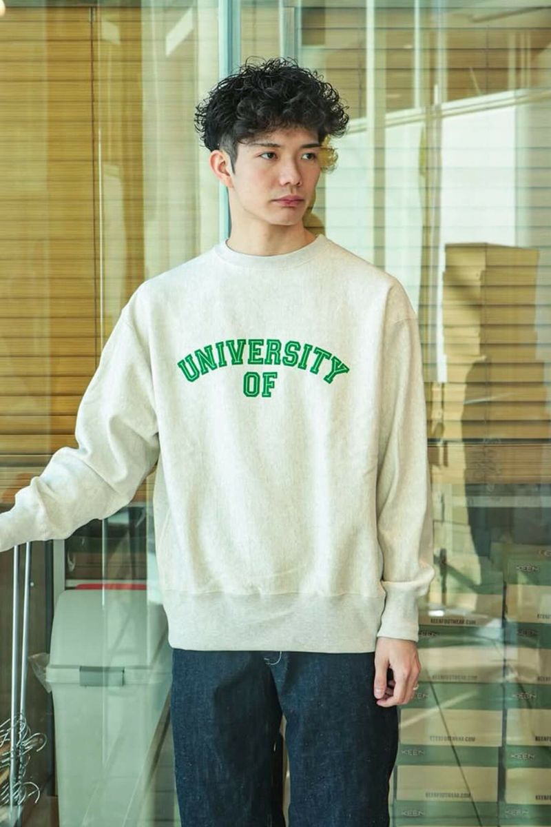 旧式の吊り編み機で編んだSancaのCOLLEGE CREW SWEAT SHIRT。アメリカのカレッジスウェットを彷彿とさせるロゴが特徴的な一枚です。身幅、アームともにゆったりとした作りなのも魅力です。