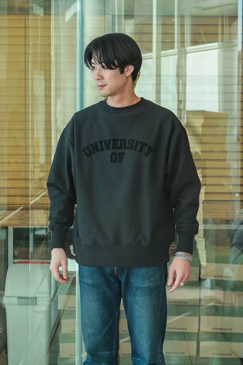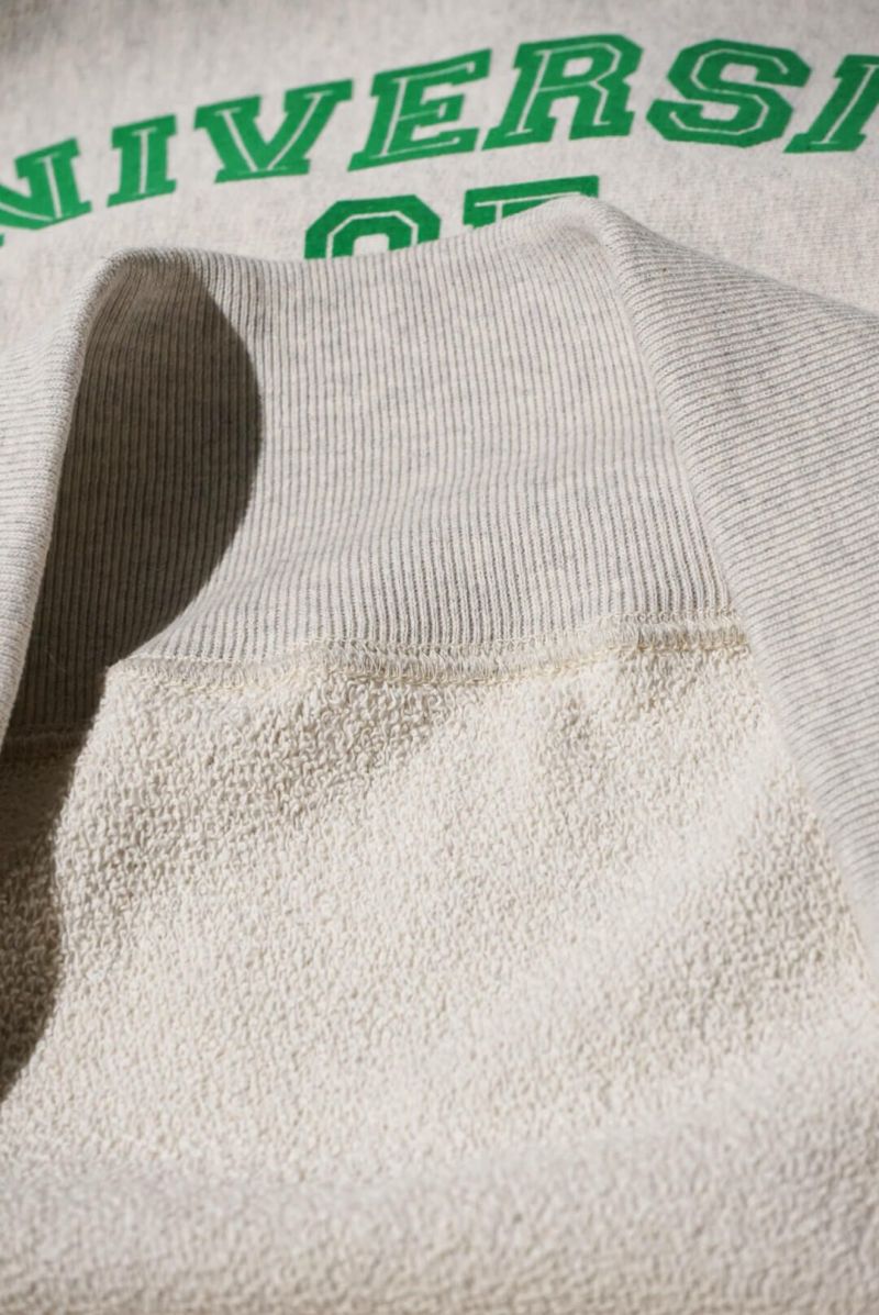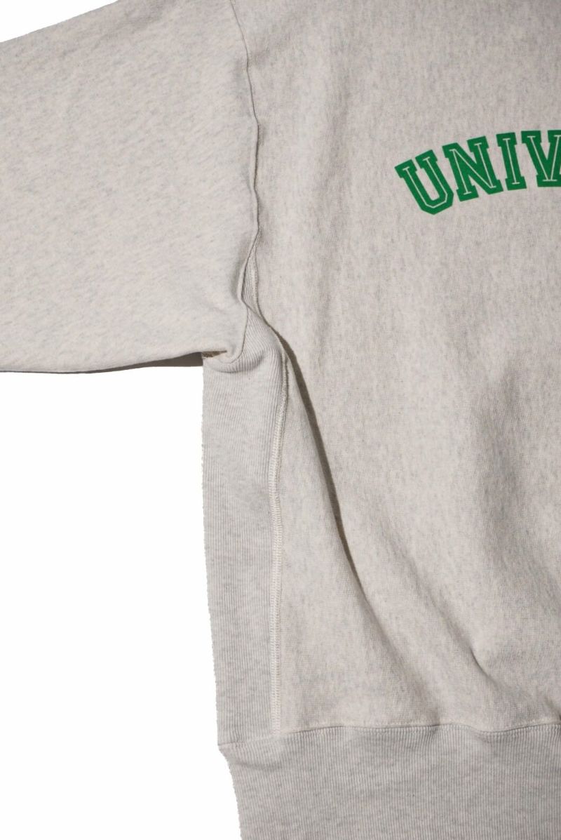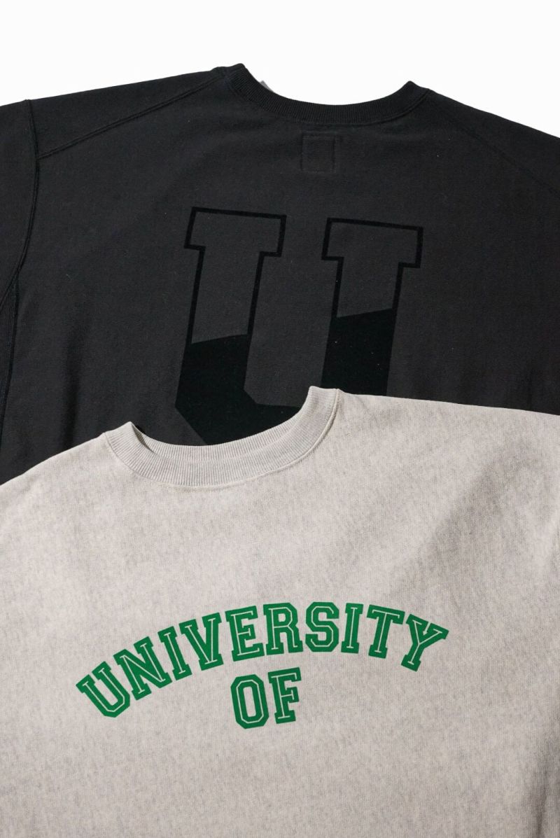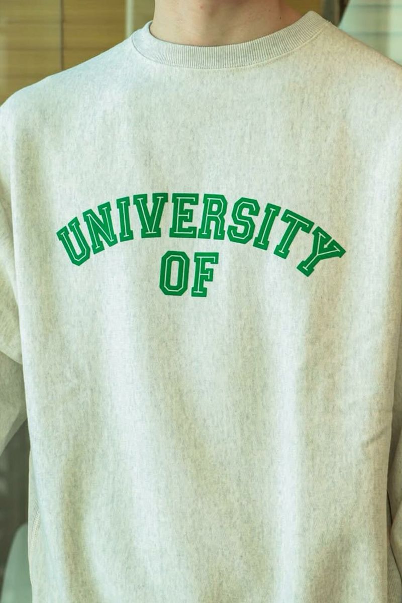 旧式の吊り編み機で編んだSancaのCOLLEGE CREW SWEAT SHIRT。アメリカのカレッジスウェットを彷彿とさせるロゴが特徴的な一枚です。身幅、アームともにゆったりとした作りなのも魅力です。