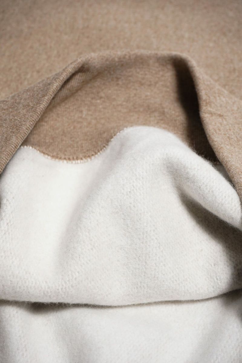 定番の26/2のBD系を使用したタートルネックスウェットです。素材は表糸に26/2のBD糸(空糸)を使ったスウェット地。元々硬めのBD糸を双糸にして、さらに詰めで編み立てる事でシャリ味のあるバルキーなタッチに仕上げています。裏のパイル面は細かくフル起毛させることで、保温性を高め、しなやかな肌触りになっています。