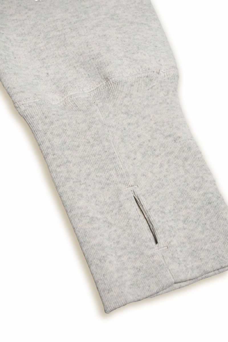 身頃はリバースウィーブ(横使い)にして縮みを軽減し、脇はリブバネルでの伸縮性を確保しています。袖リブは長めにフィンガーホールを、サイドにはハンドウォーマーポケットも付けていますので、冬場には防寒性の高いインナーとしても重宝できます。ジャケットスタイルからアウトドアスタイルまで相性の良いA VONTADE冬の定番アイテムです。