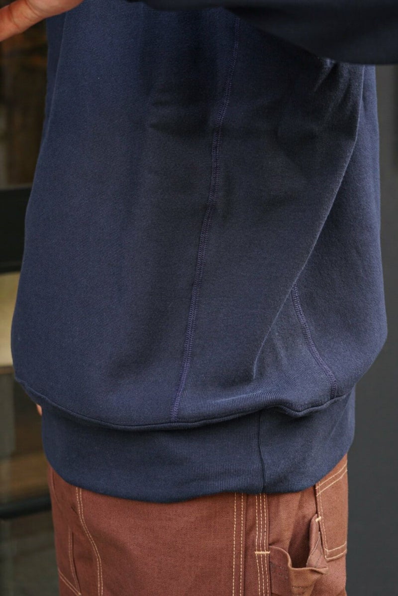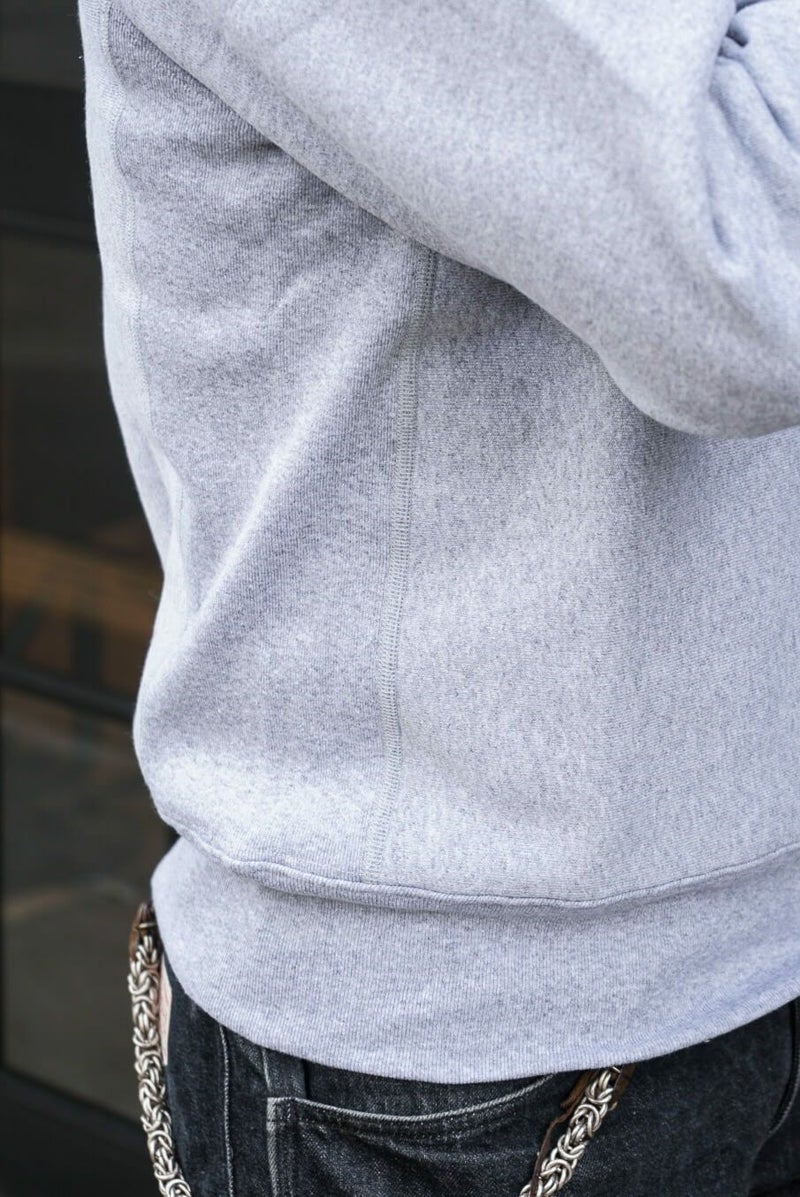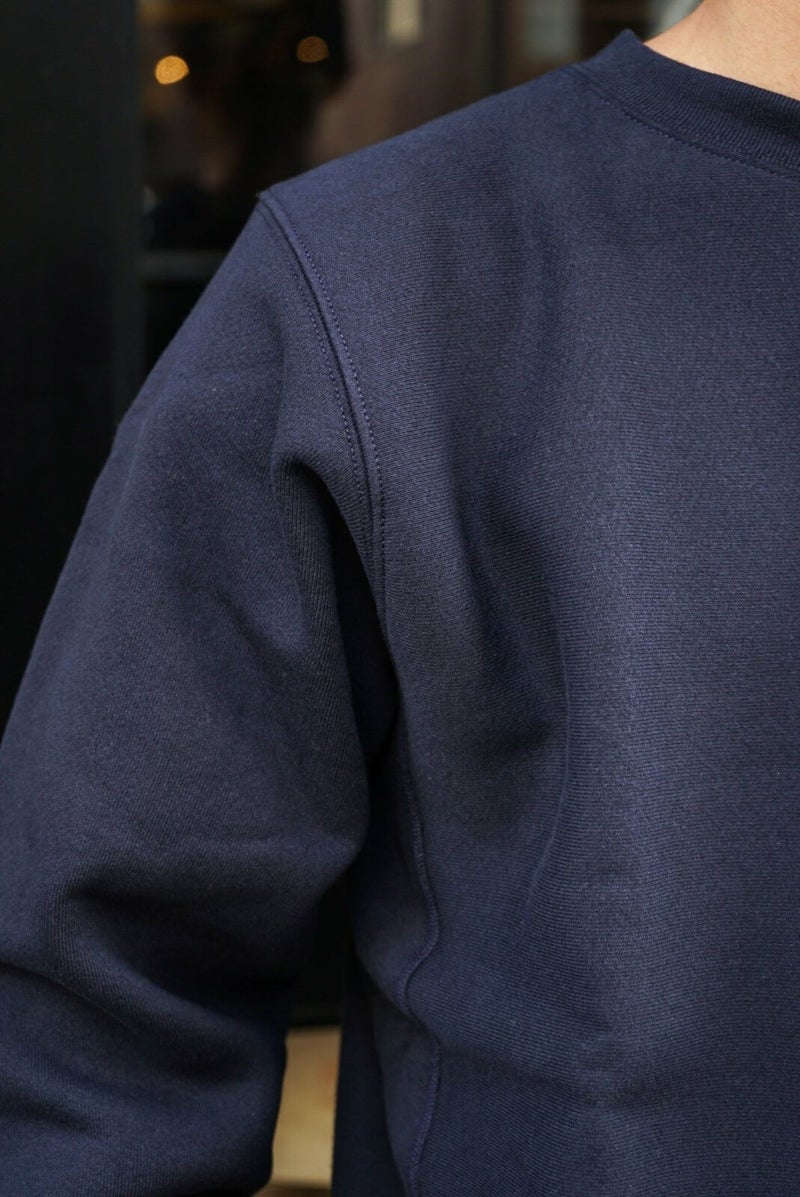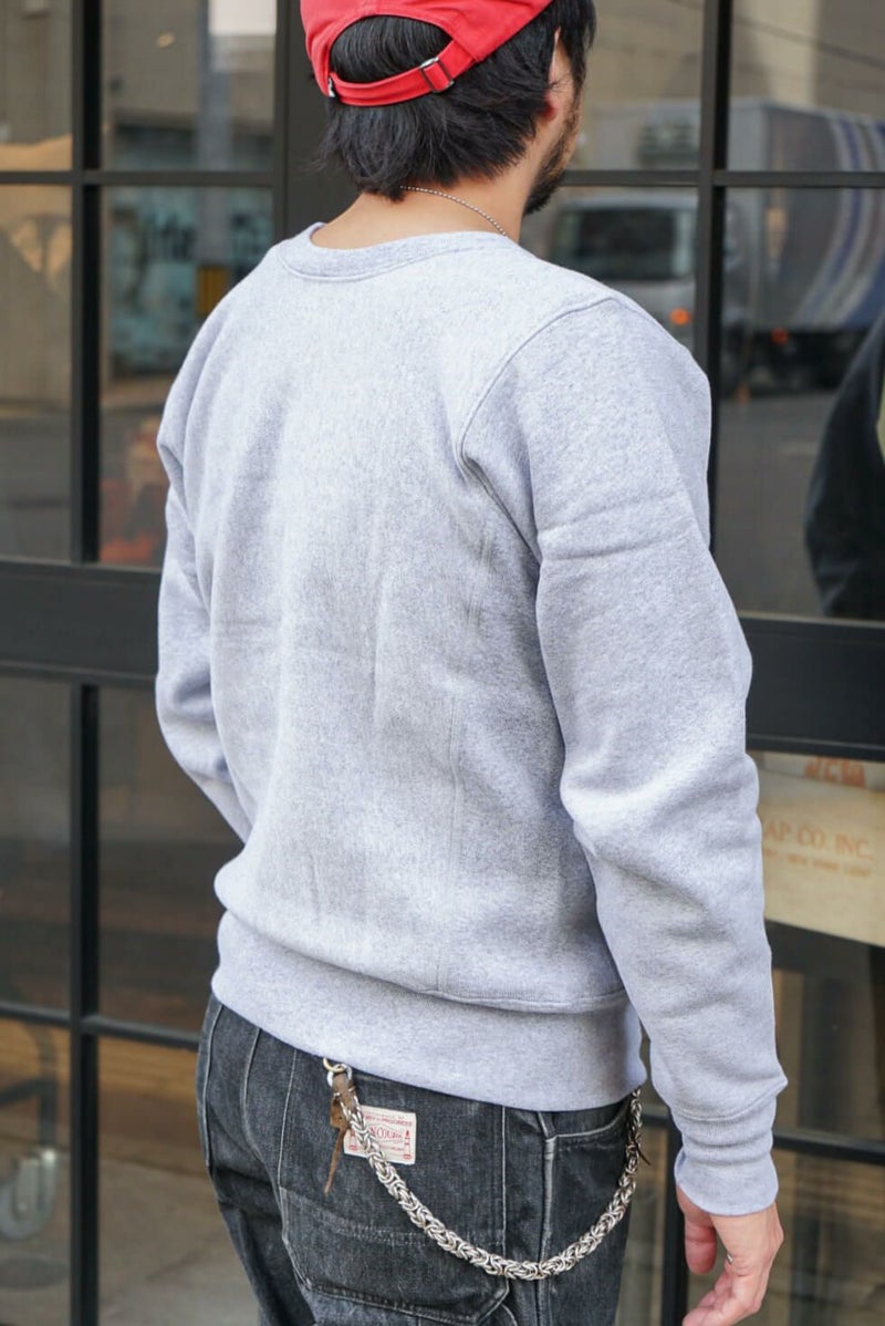 USAコットンの持つざっくりとした風合いと肉厚な生地、しっかり起毛された裏地が特長のアメリカ製モデル「REVERSE WEAVE 12.5oz. Terry Fleece(リバースウィーブ 12.5オンス テリーフリース)」シリーズのクルーネックスウェットシャツです。