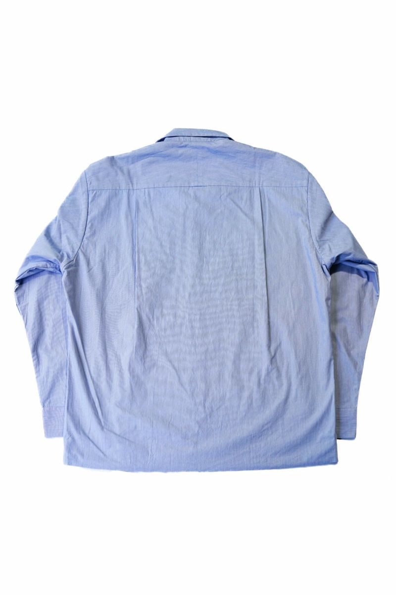 素材には、ドレスシャツにも用いられるサックスブルーの刷毛目を採用。二重仕立てにより、襟のロールやカフスのタックが柔らかく立体的に表現され、上品な曲線を描きます。クリーンでミニマルな印象を漂わせながら、軽やかに羽織れる一枚。気温の下がりきらない秋口にも重宝する、ARCHらしい提案のシャツジャケットです。