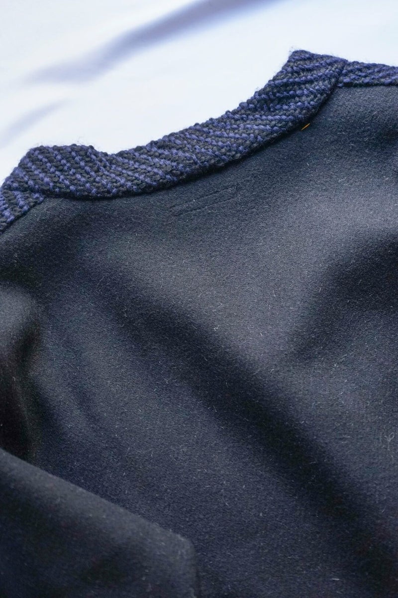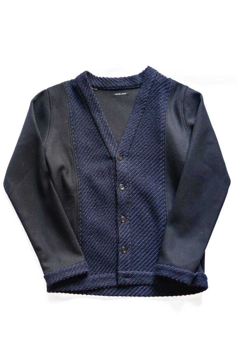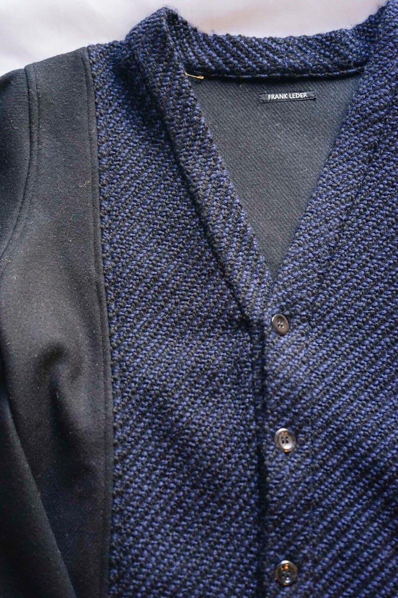 ボディと袖・背中に異なる生地を組み合わせたカーディガン。 ブルーとブラックのコントラストが美しい一枚です。 FRANK LEDERらしい肉厚でいて無骨な生地も魅力的です。 WOOL 100% FRANK LEDER BLUE BLACK CARDIGAN PRICE ¥74,800