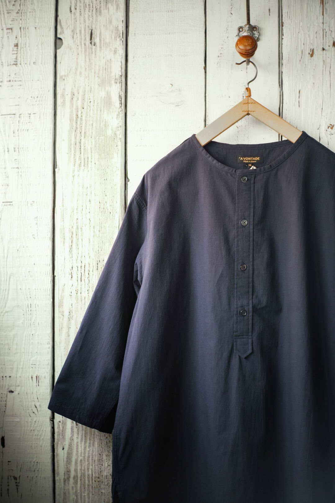 ミリタリーのスリーピングシャツをベースにした、3/4スリーブのプルオーバーシャツ。 素材には強撚糸を使用したシアサッカー素材を使用しています。 ペーパーライクなドライタッチで夏場に最適な素材です。 半袖ではなく7分袖という点もこのシャツの魅力の一つ。 カットソーよりも上品に着れ、夏の一枚としても活躍してくれでしょう。 A VONTADE SLEEPING SHIRT 3/4 SLEEVE PRICE ¥20,900(税込)