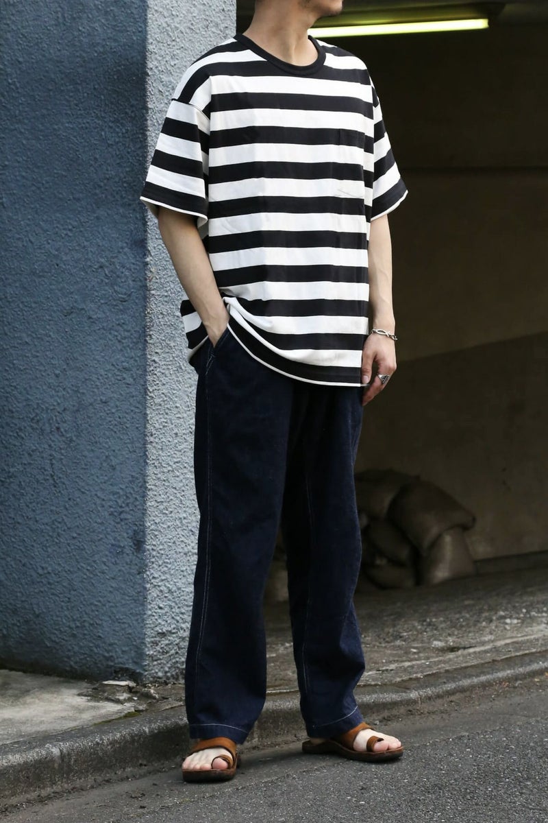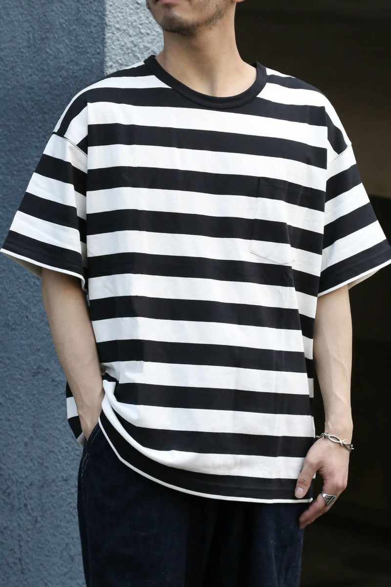 ヘビーウェイトTのガシッとした素材ではなく、原綿から変更したドライな質感に。程よい身幅も魅力の一つで、一枚で着てもサマになります。肉厚な生地なのでエイジングも楽しめるTシャツです。
