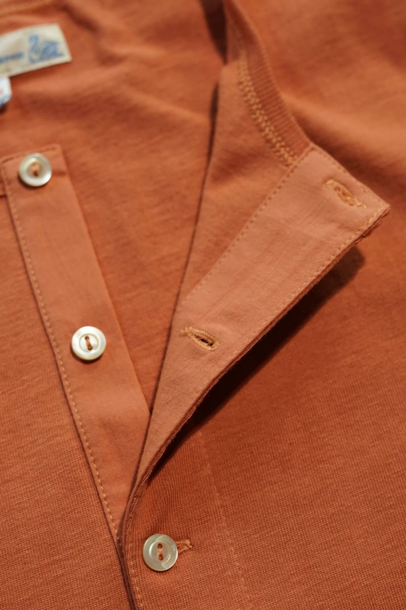 首元と袖部分にはヴィンテージのヘンリーネックシャツのディテールであるリブがあしらうことでヴィンテージ感を演出。襟のヨレ、袖のタルミは無く、タルミが出ても洗濯すると生地が戻り、末長く付き合うことが出来るのでとても重宝できます。ボックスやタグまでボタン・下げ札・織りタグ・パッケージングと、すべてドイツ製にこだわり抜いている、全てに於いて妥協がないブランドです。