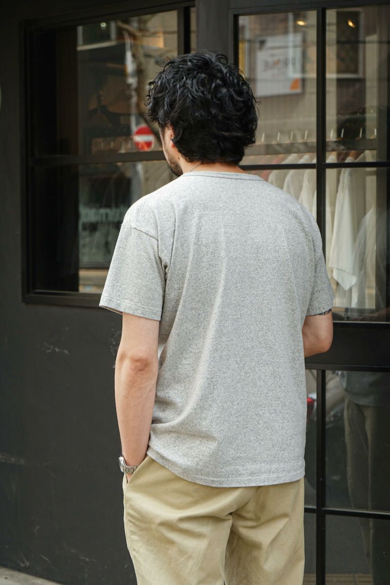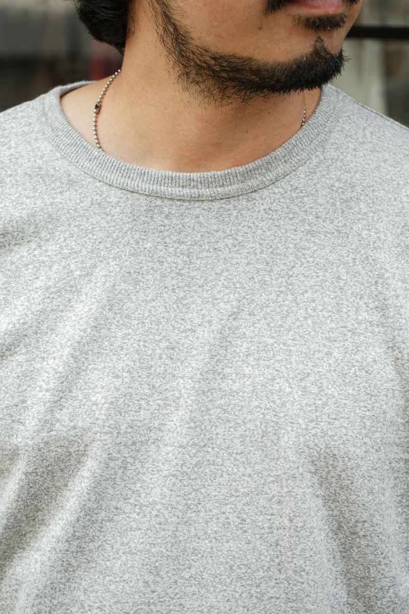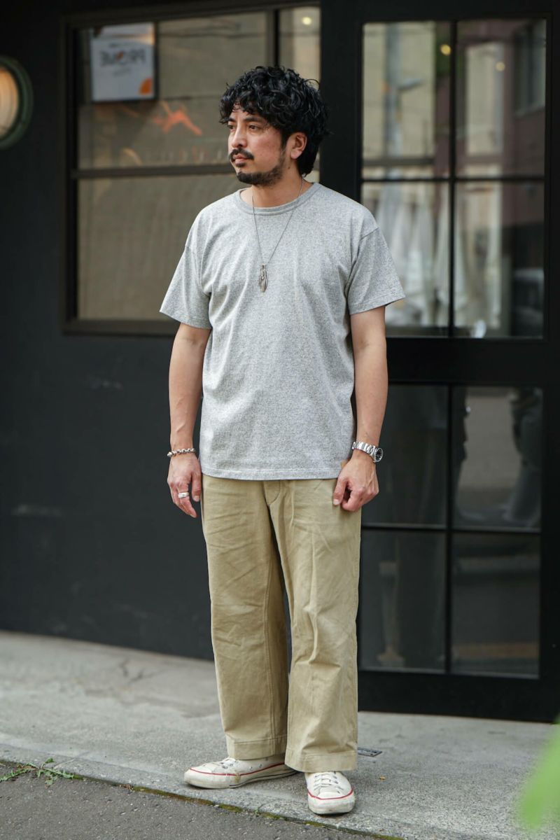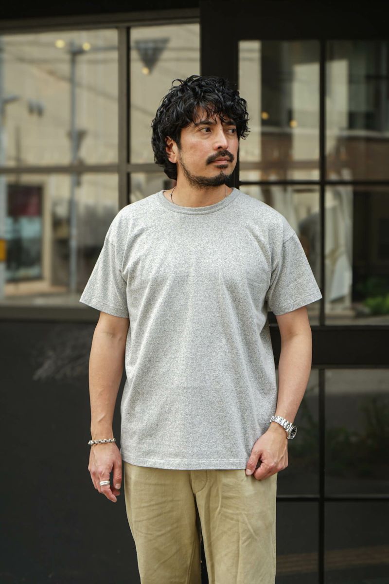 ボディは丸胴、脇はシームレスになっているのでステッチレスで肌着として理想的。シルエットはとてもベーシックですが、インナーとしてはもちろん、一枚でもサマになるTEEシャツです。