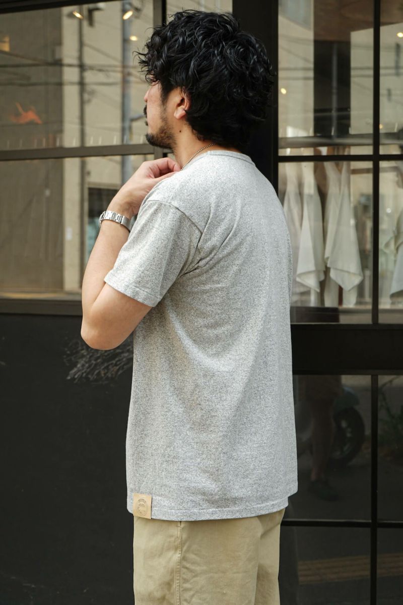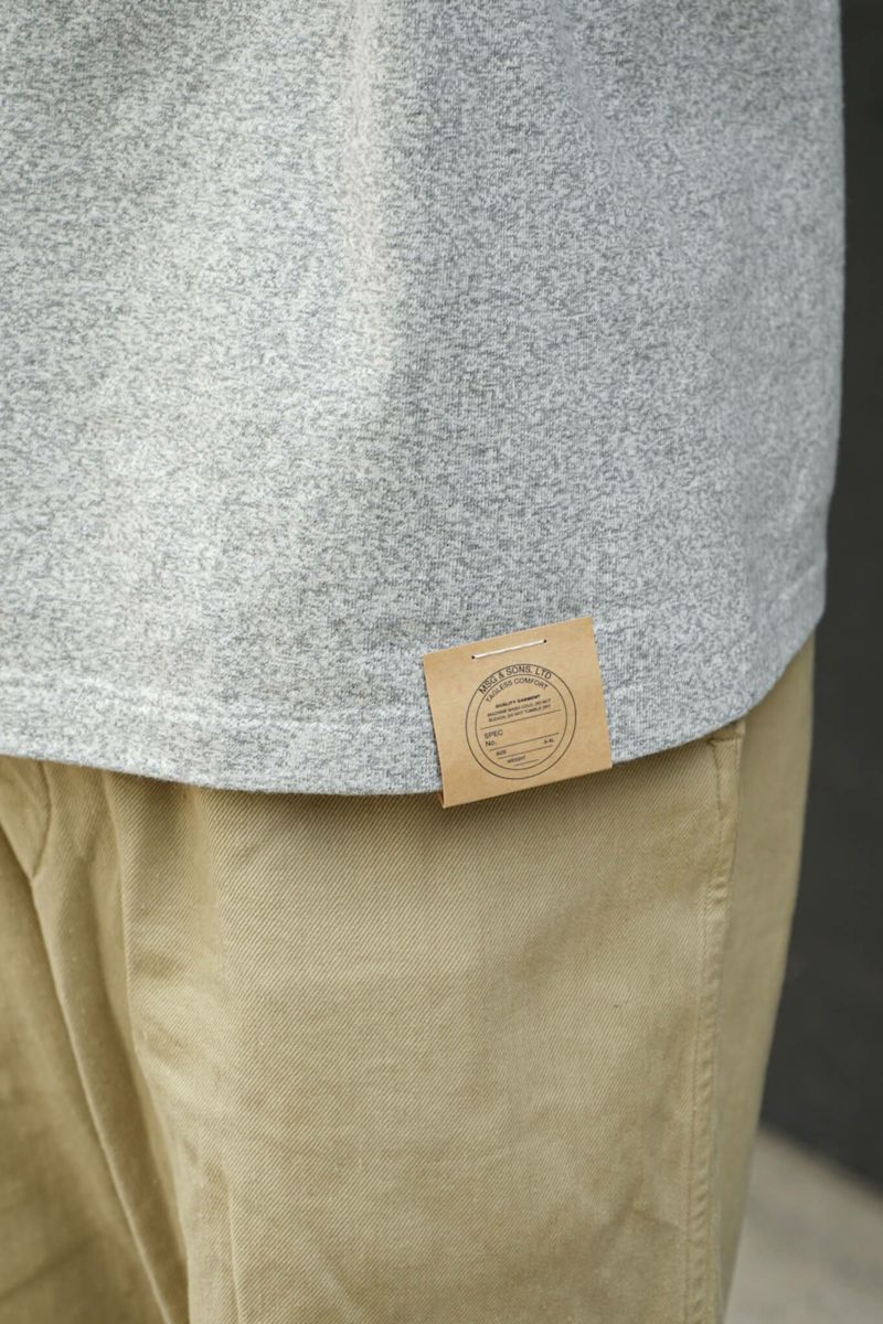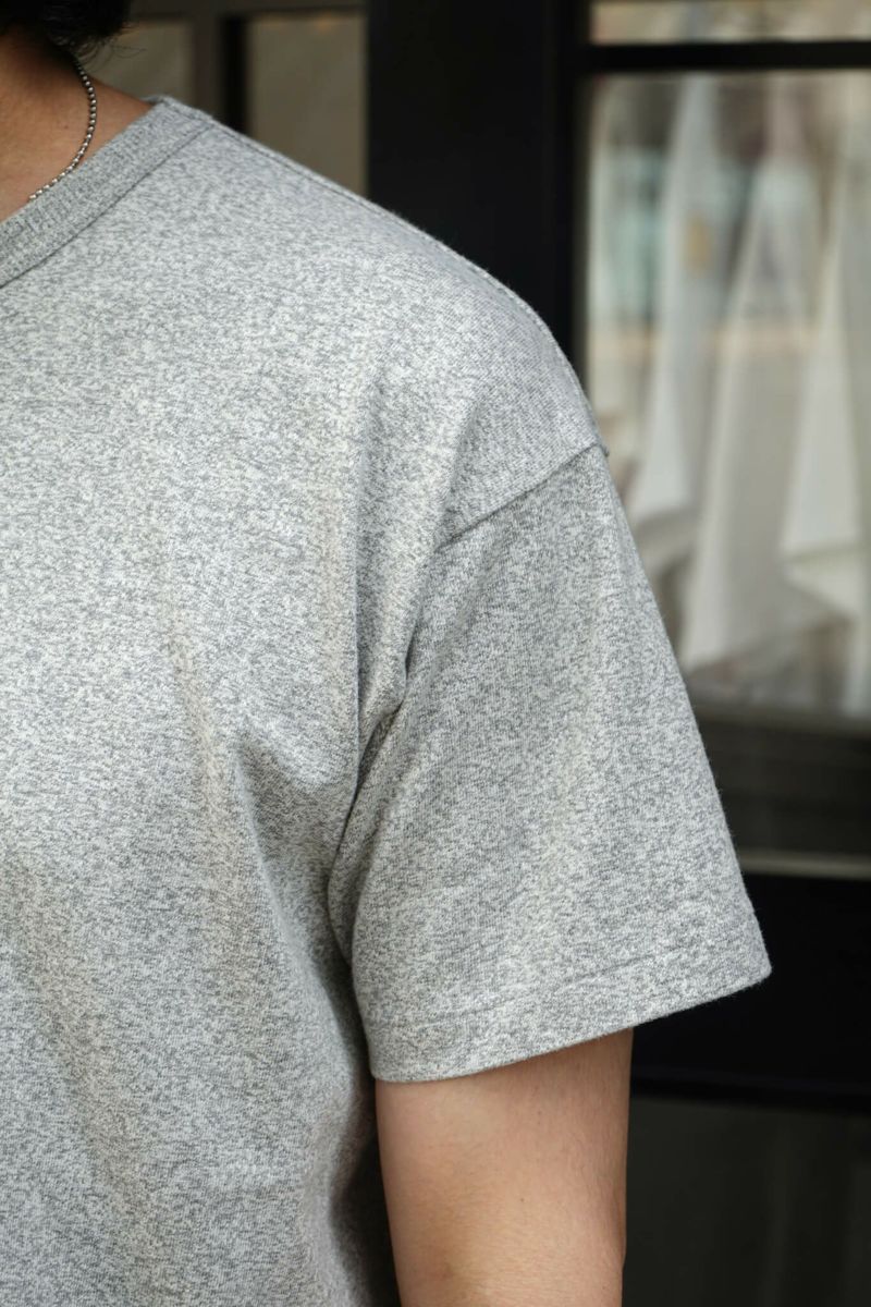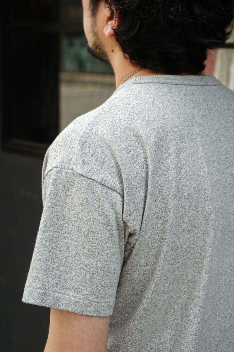 “88/12″ボディとは、コットン88% / レーヨン12%の混紡糸からなる生地であり、独特の杢感と、しっかりとした厚みがありながらもレーヨン混による柔らかな質感が特徴です。アメリカから輸入した米綿を用いた “88/12” 糸をゼロからオリジナルで開発。トライ&エラーを繰り返しながら、ようやく理想とする生地が完成しました。