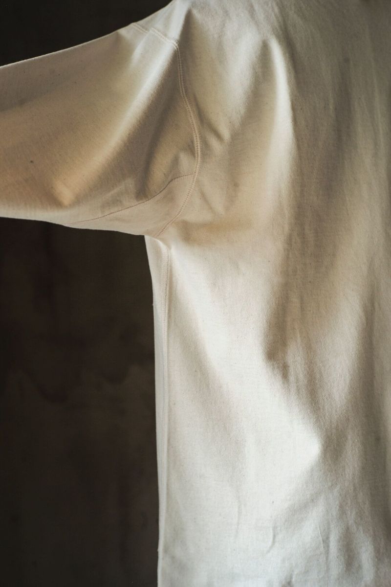 生地は、1865年に南仏にて創業したサプライヤーであり、フランスで長い歴史を持つカットソーブランドに生地を供給してきた"TOURNIER"(トゥルニエ ) 社の生機生地を使用。
