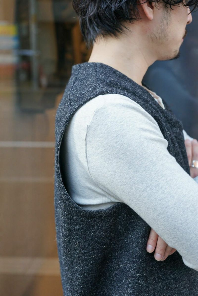 1950年代頃にフランス軍へ支給されていたプルオーバーベストから着想を得て製作された一着。シンプルなデザインは組み合わせるアイテムを選ばず、ジャケットのインナーにも最適です。