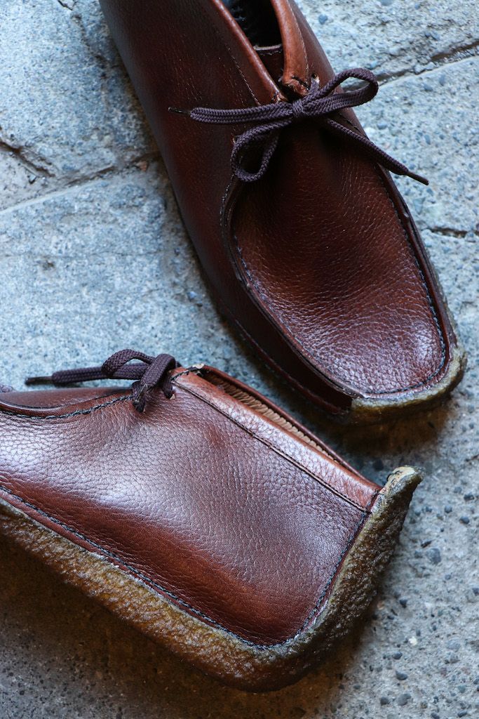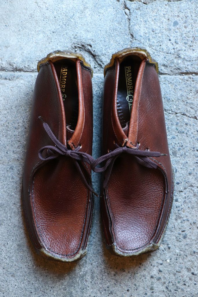 1934年にアイルランドで創業したシューズファクトリー、Padmore & Barnes(パドモアアンドバーンズ)。アイルランドの自社工場において、500人以上のスタッフと同社周辺の何百名もの人々が各家庭で行う 独自の伝統的なハンドメイド技術によって、長きにわたり靴作りを行ってきました。今日もこの伝統を守り続け、カジュアルシューズの製造においてはそのデザイン性、また革新と生産技術の先駆者として国際的に高い評価を得ています。現在は、生産国をポルトガルへ変更してしまいましたが、今回入荷したものは全てアイルランド製の箱付きデッドストック。二度と手に入れることのできないアイルランド製のクレープソールシューズです。