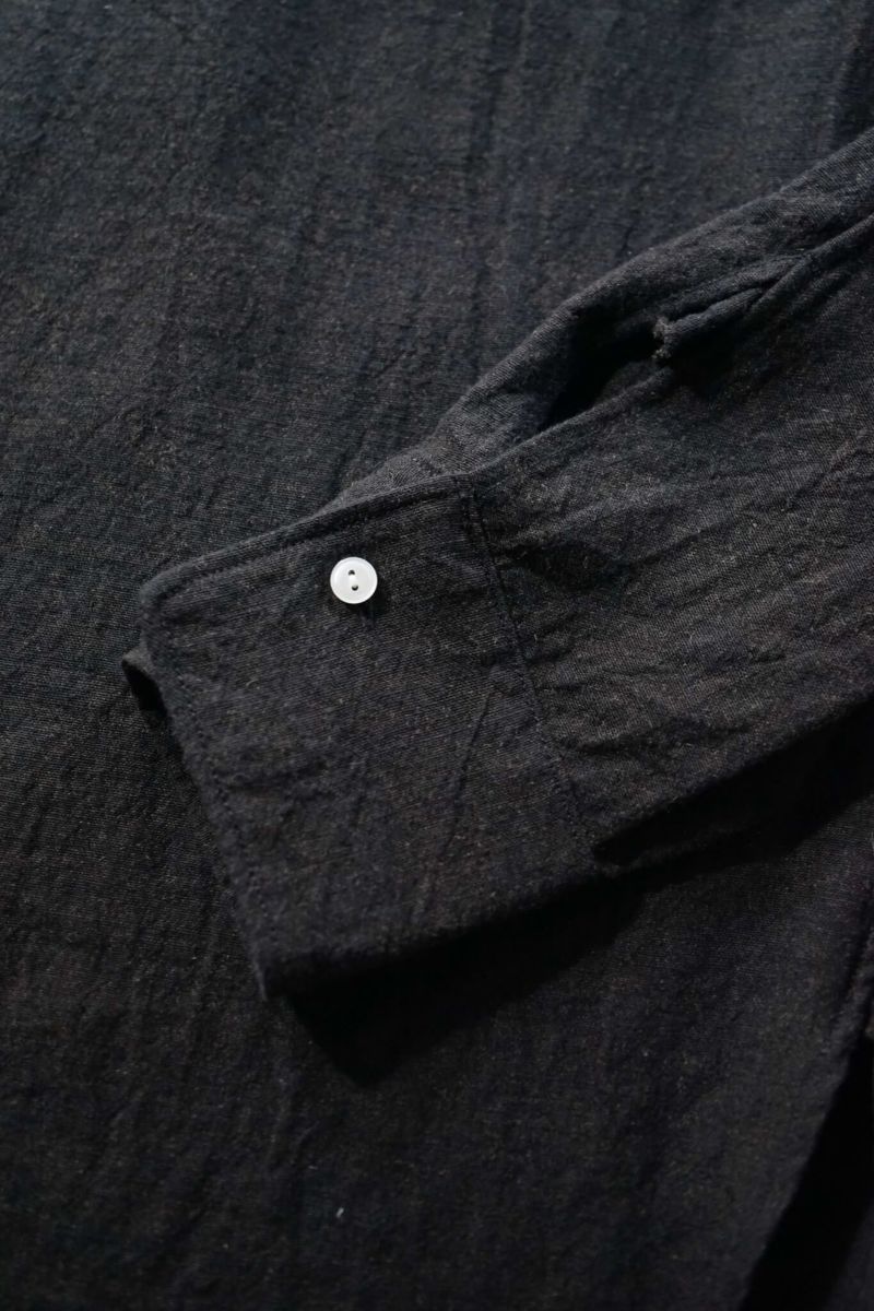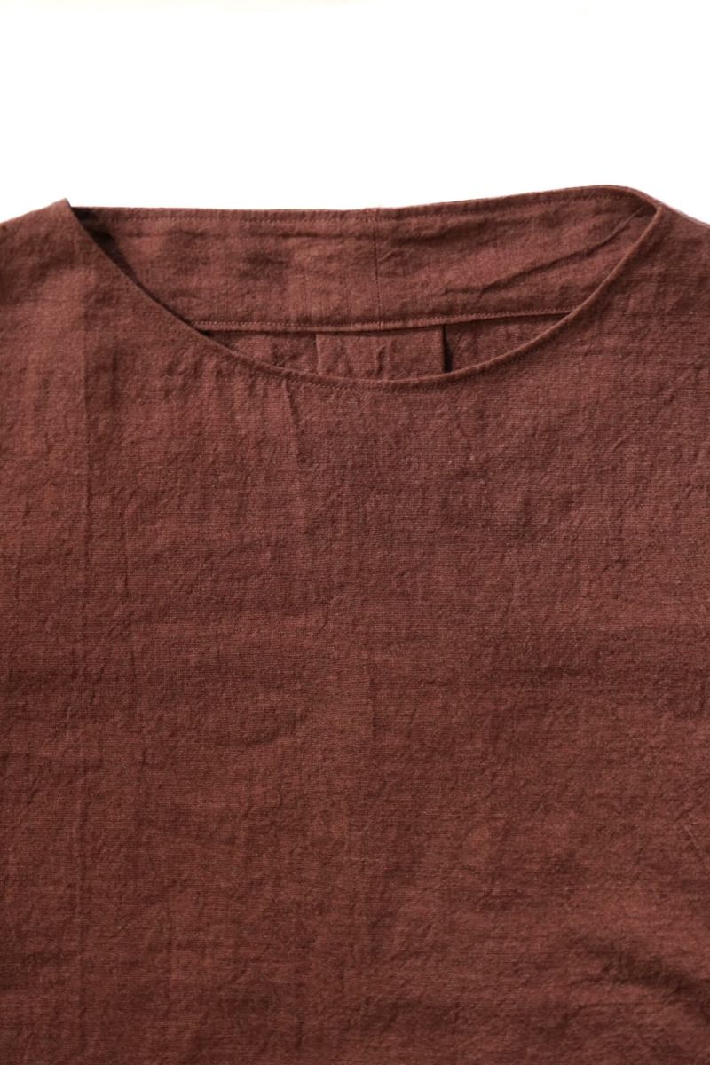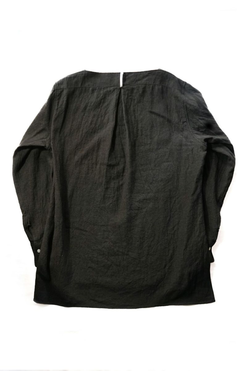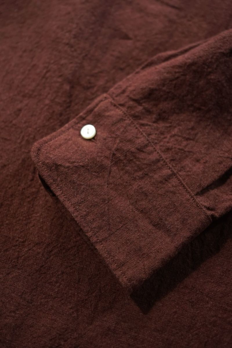 ボートネックカットソーのようなネックデザインとシャツのような袖の仕様を組み合わせたSUS-SOUS(シュス)定番のスリーピングシャツ。カットソーのようなラフさとシャツの上品さを両立した1枚です。素材の表情と雰囲気は維持しながら生地のオンスを今までより若干落とすことで軽さを出し、通年を意識したアイテムになっています。